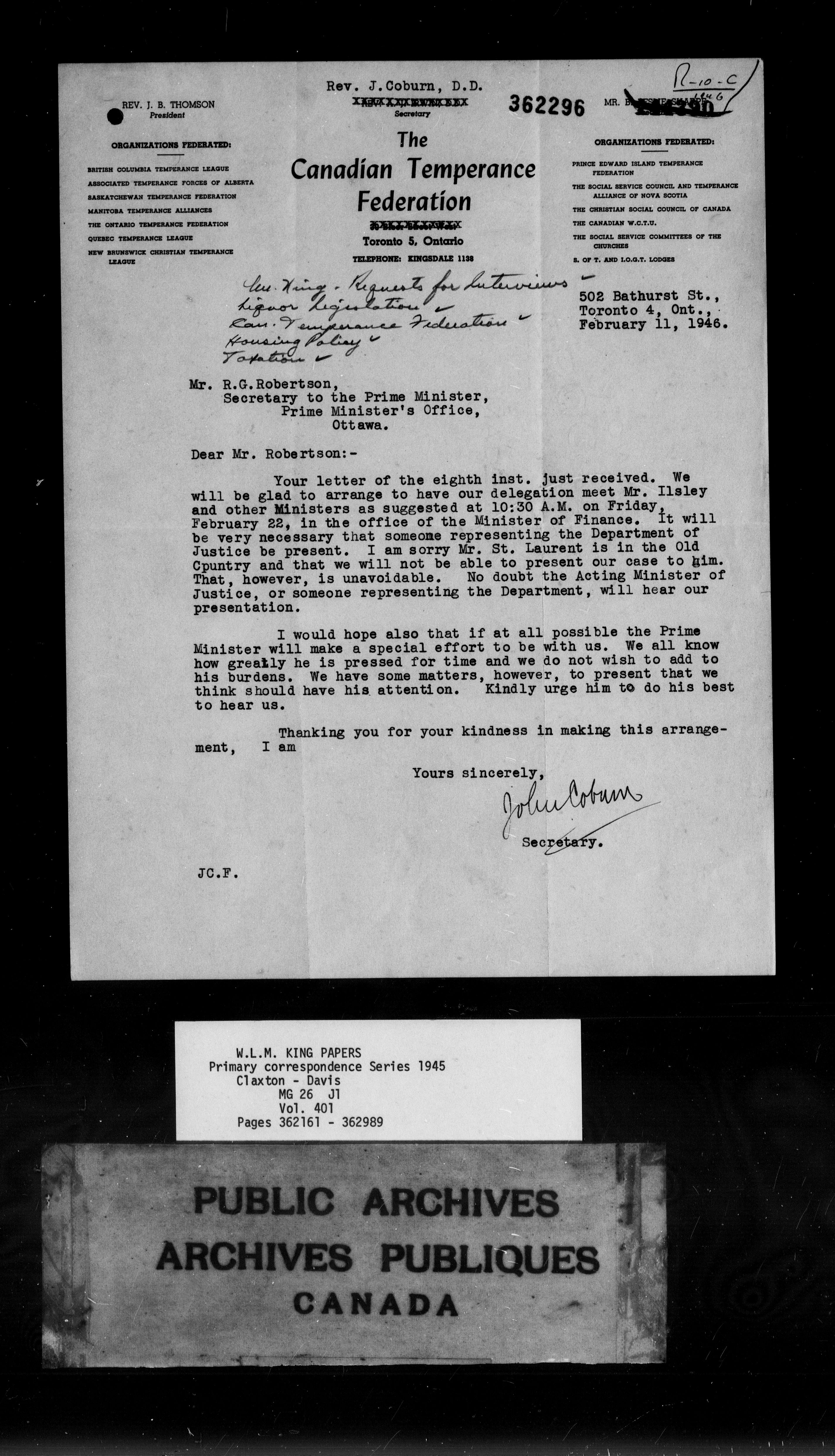 William Lyon Mackenzie King : Primary series correspondence (J1) - 9168