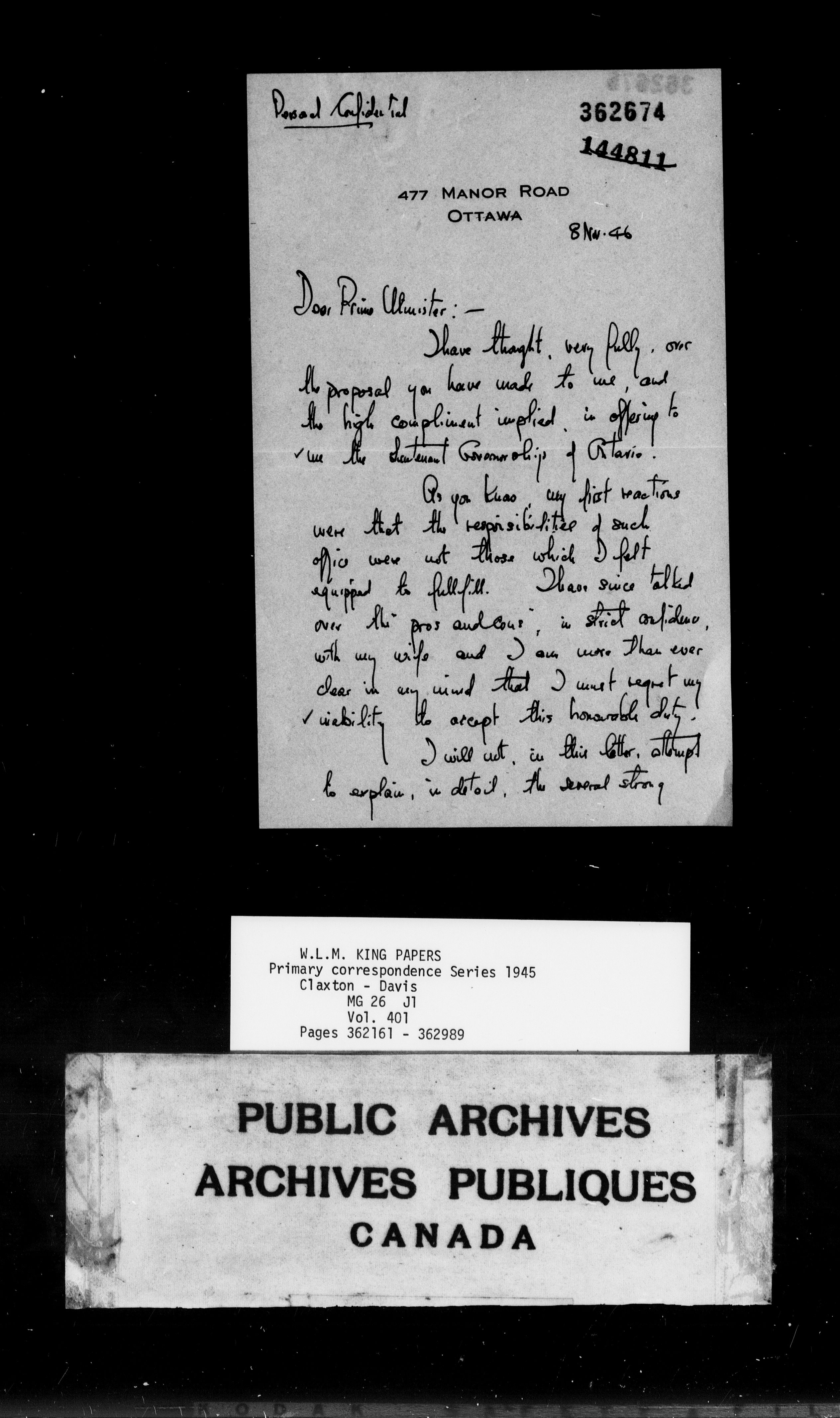 William Lyon Mackenzie King : Primary series correspondence (J1) - 9168