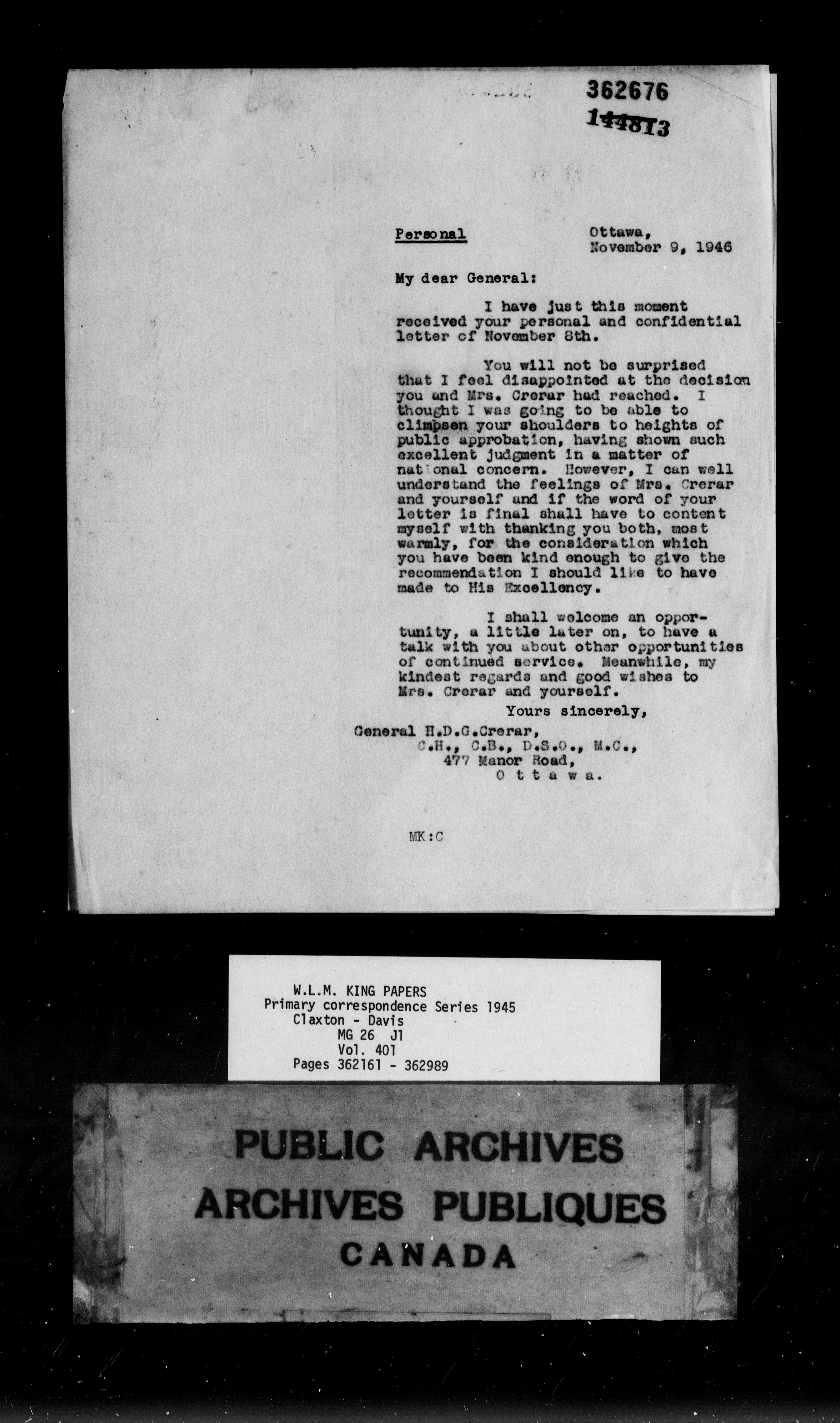 William Lyon Mackenzie King : Primary series correspondence (J1) - 9168