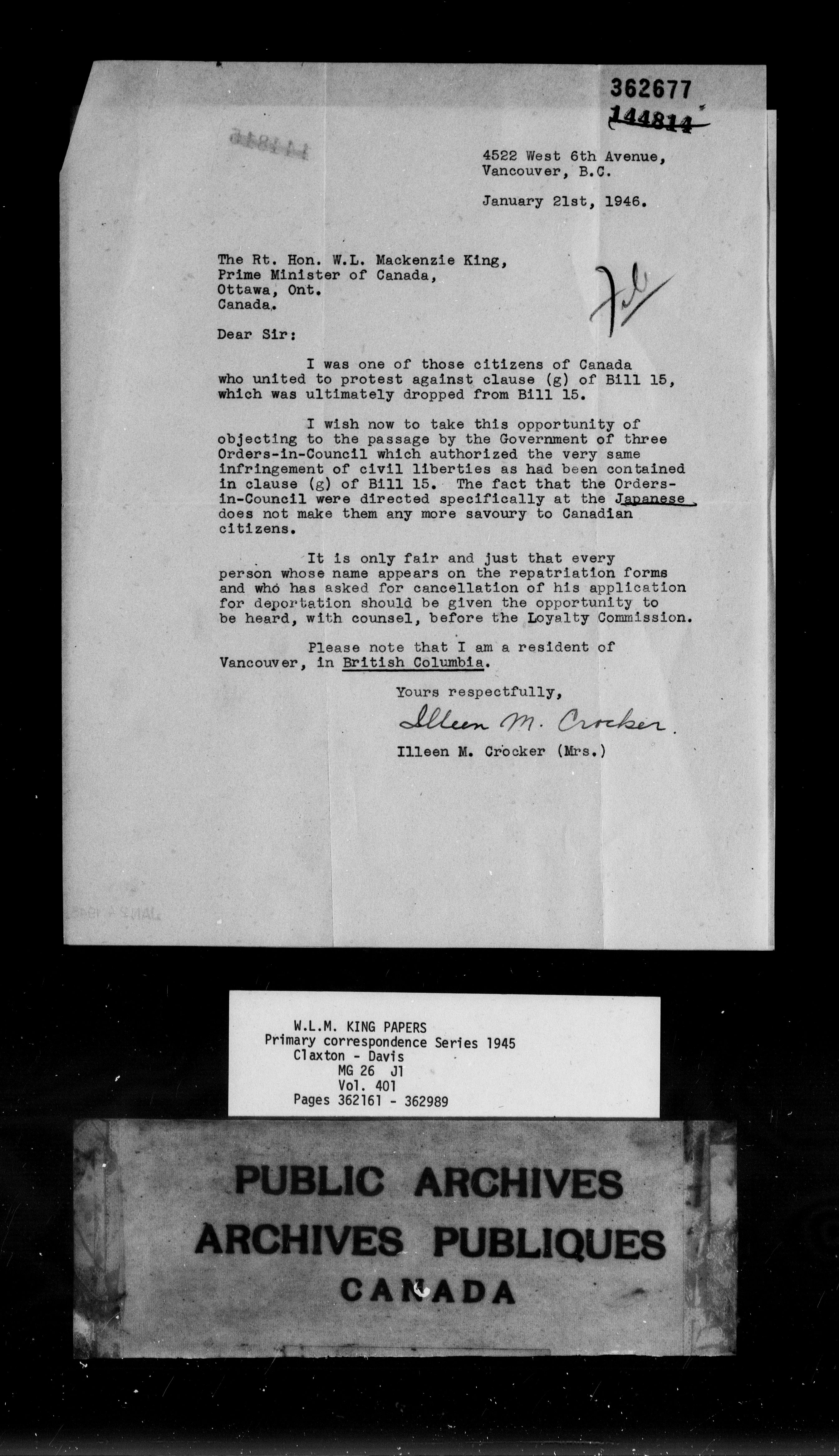 William Lyon Mackenzie King : Primary series correspondence (J1) - 9168