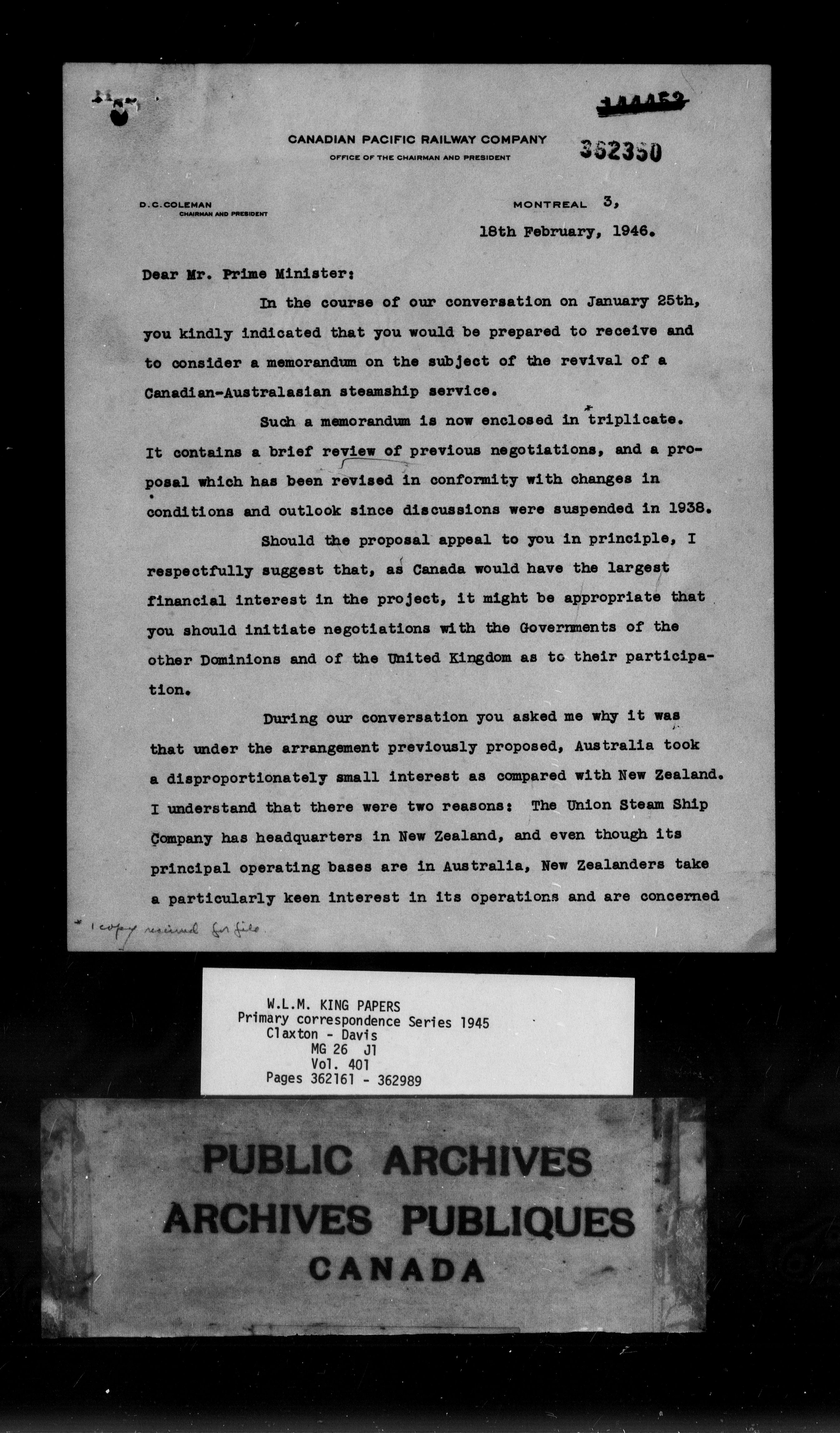 William Lyon Mackenzie King : Primary series correspondence (J1) - 9168