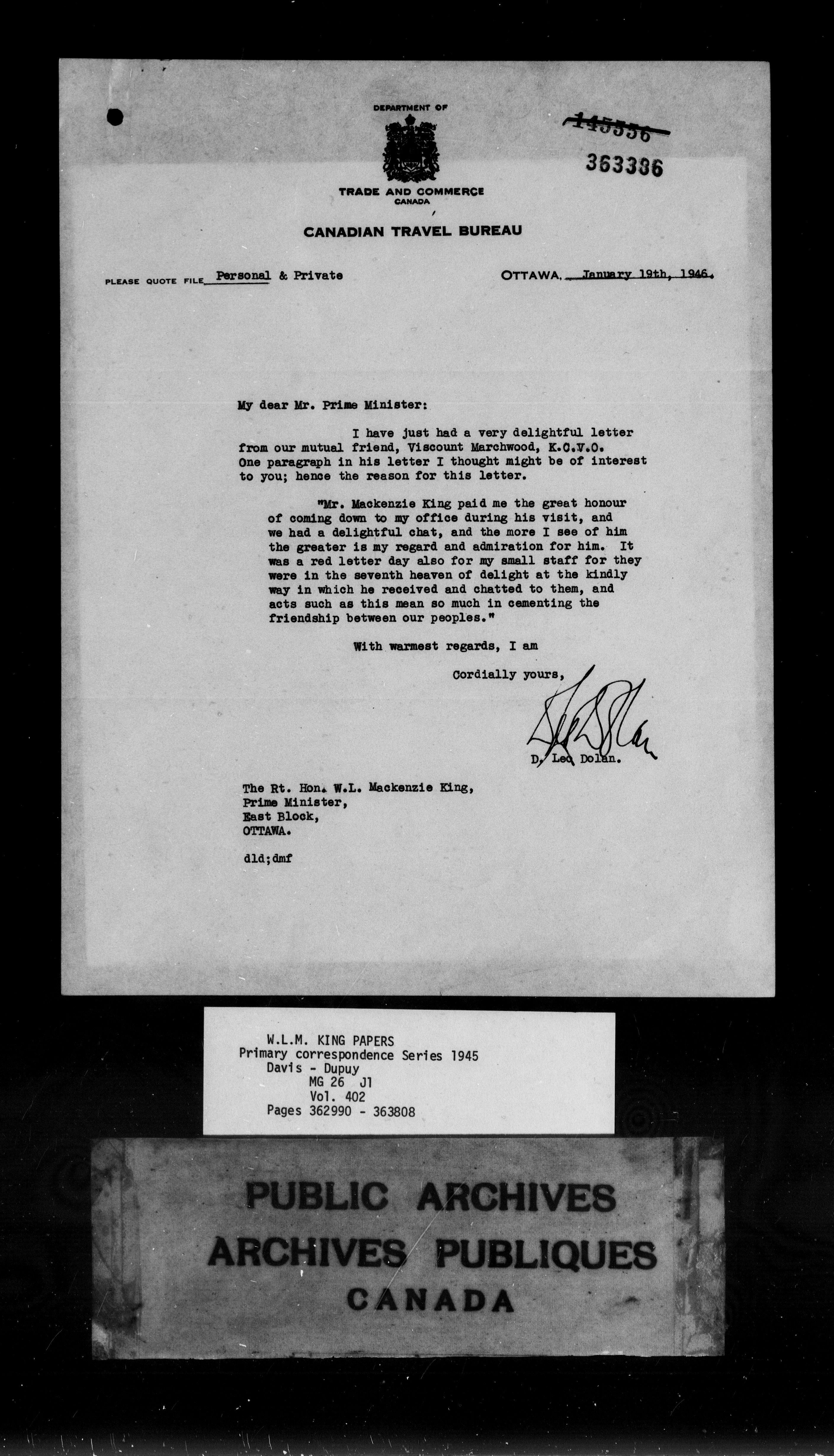 William Lyon Mackenzie King : Primary series correspondence (J1) - 9169