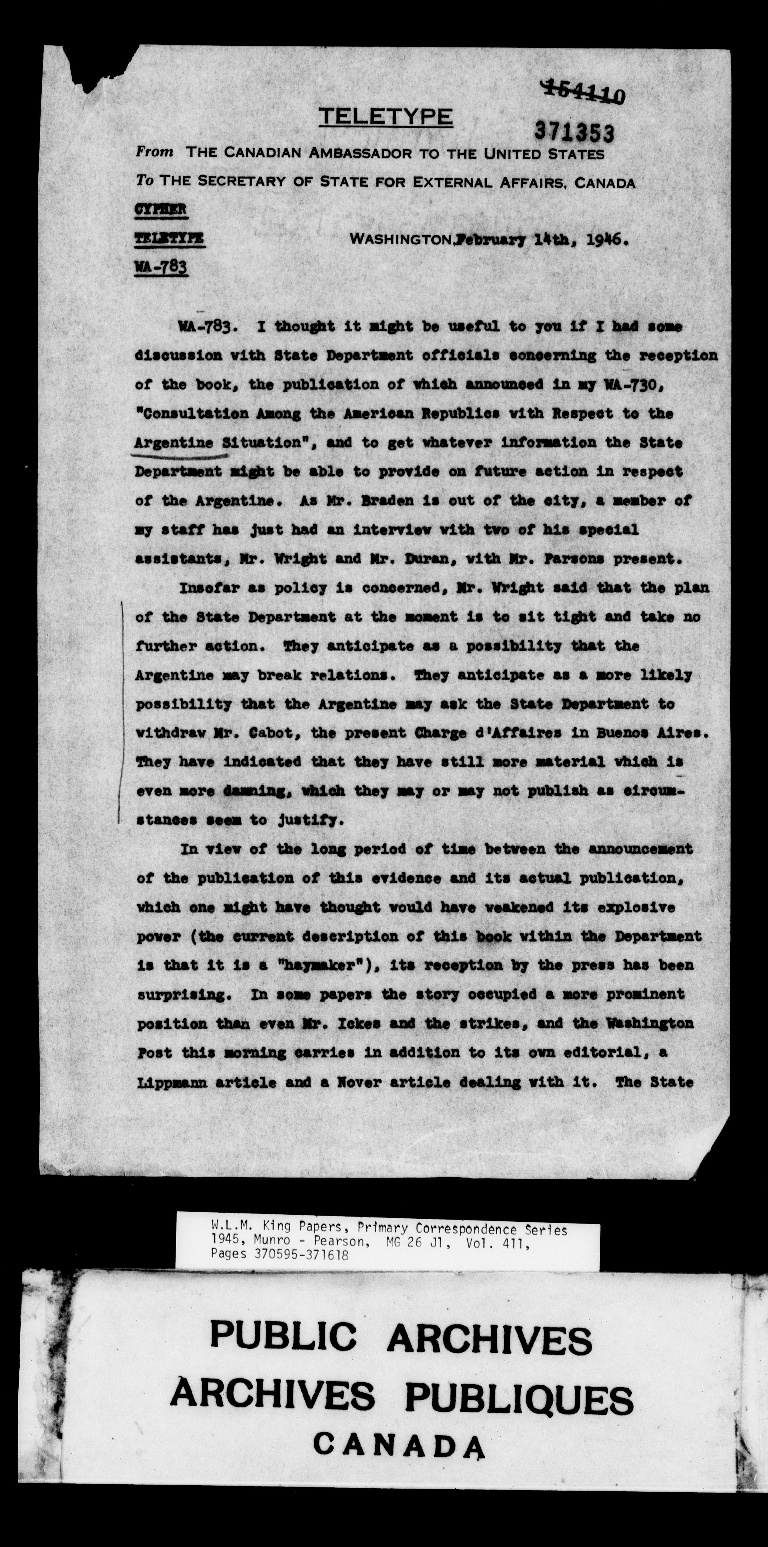 William Lyon Mackenzie King : Primary series correspondence (J1) - 9175