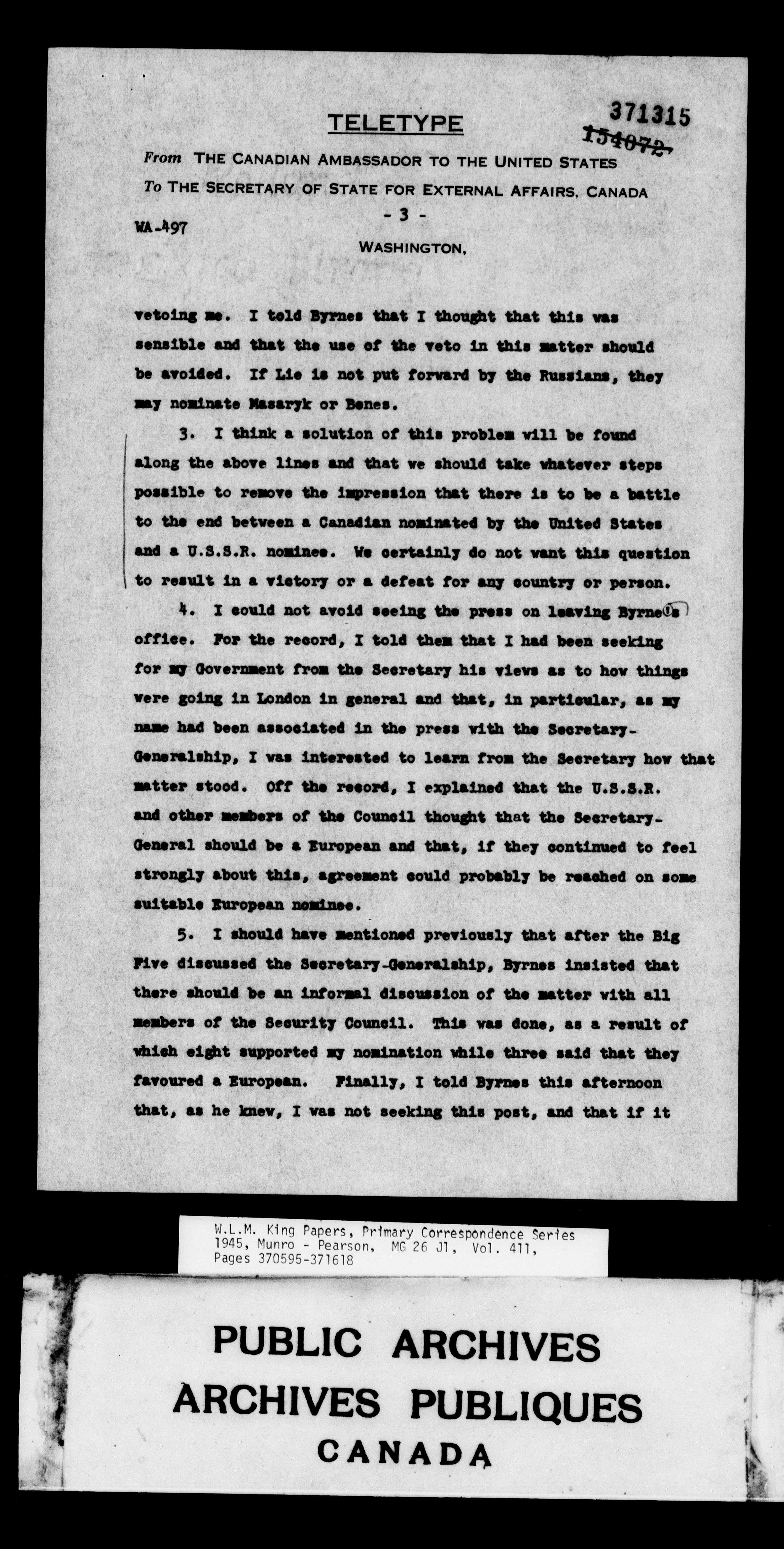 William Lyon Mackenzie King : Primary series correspondence (J1) - 9175