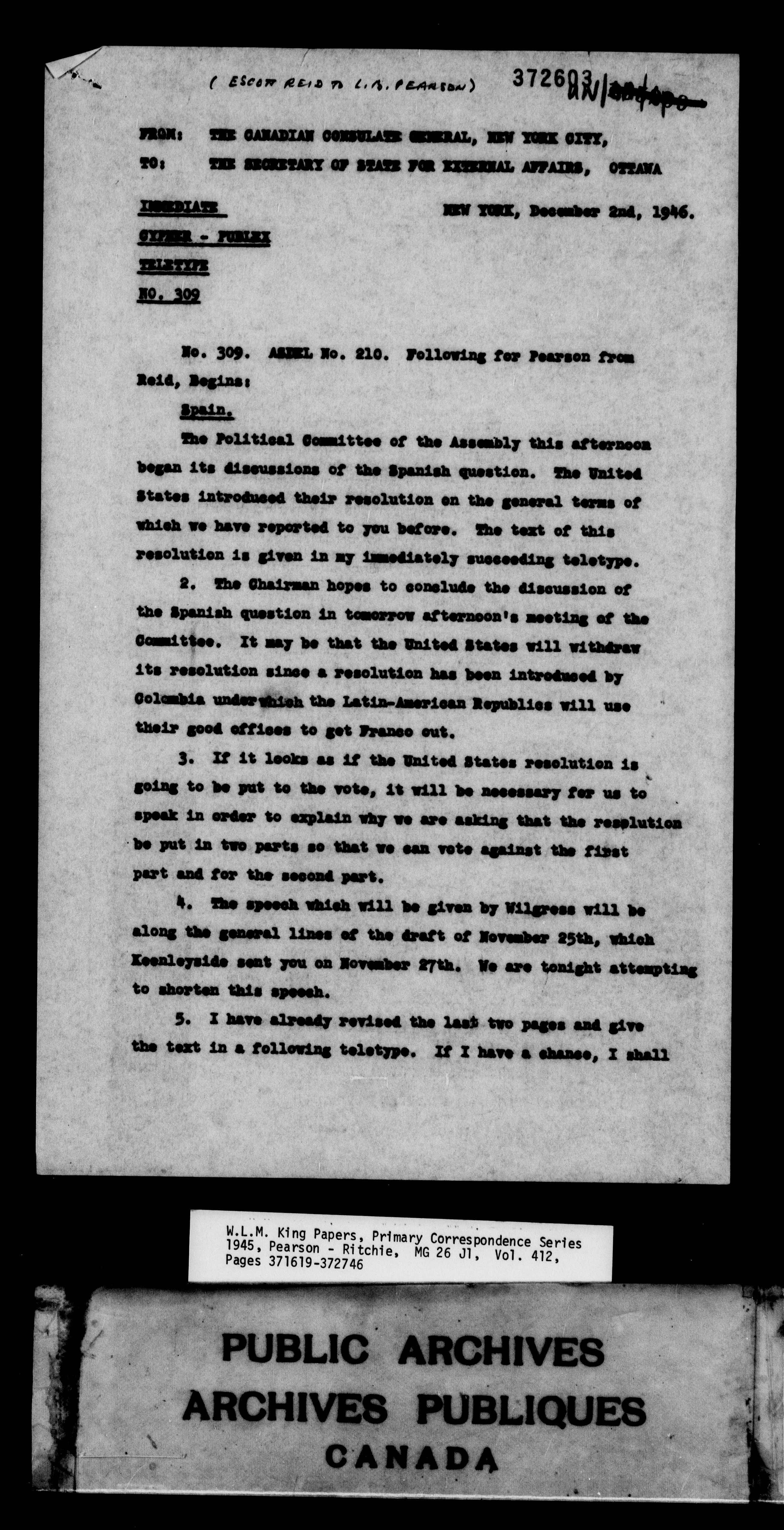 William Lyon Mackenzie King : Primary series correspondence (J1) - 9176