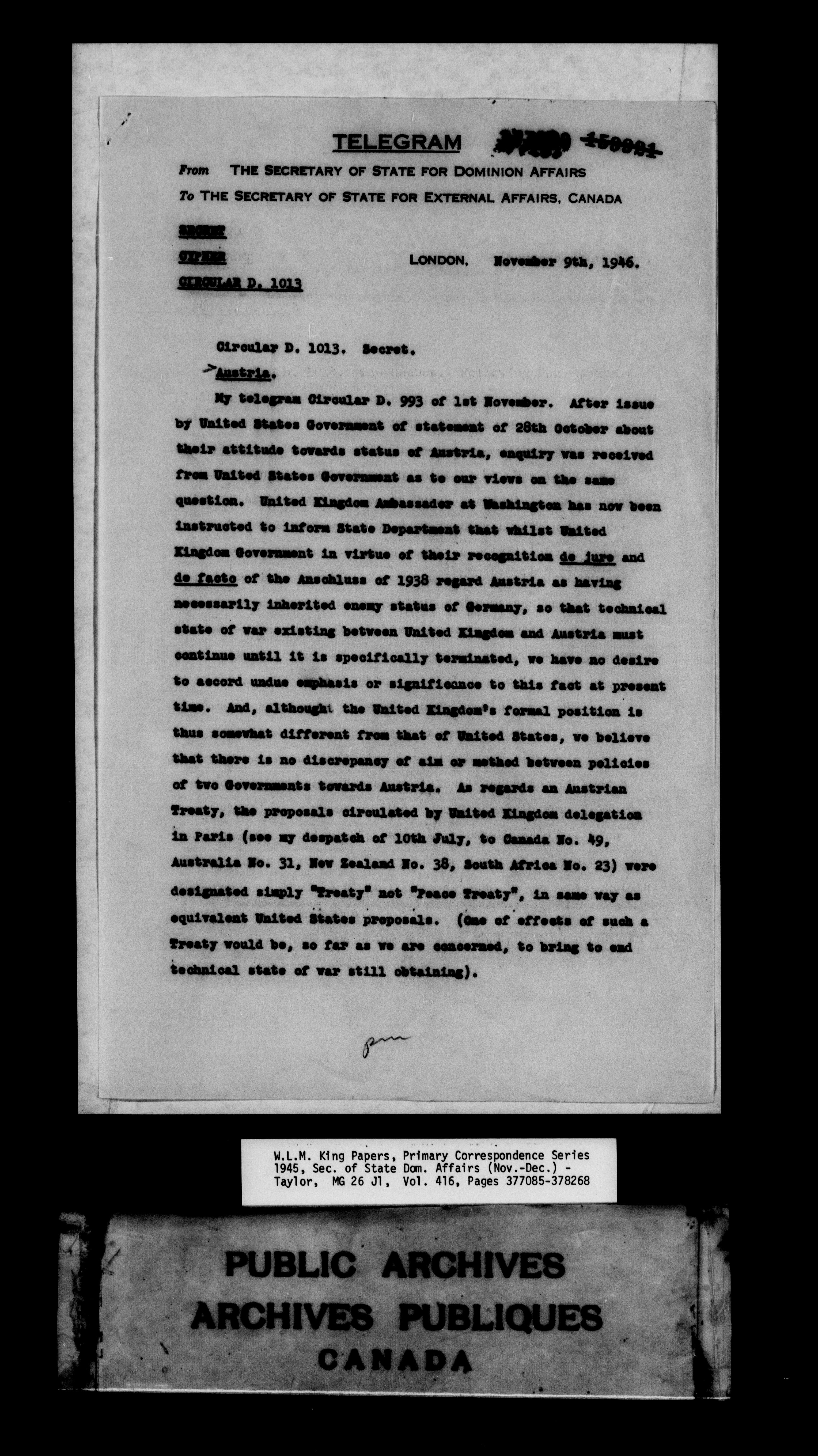William Lyon Mackenzie King : Primary series correspondence (J1) : C-9179