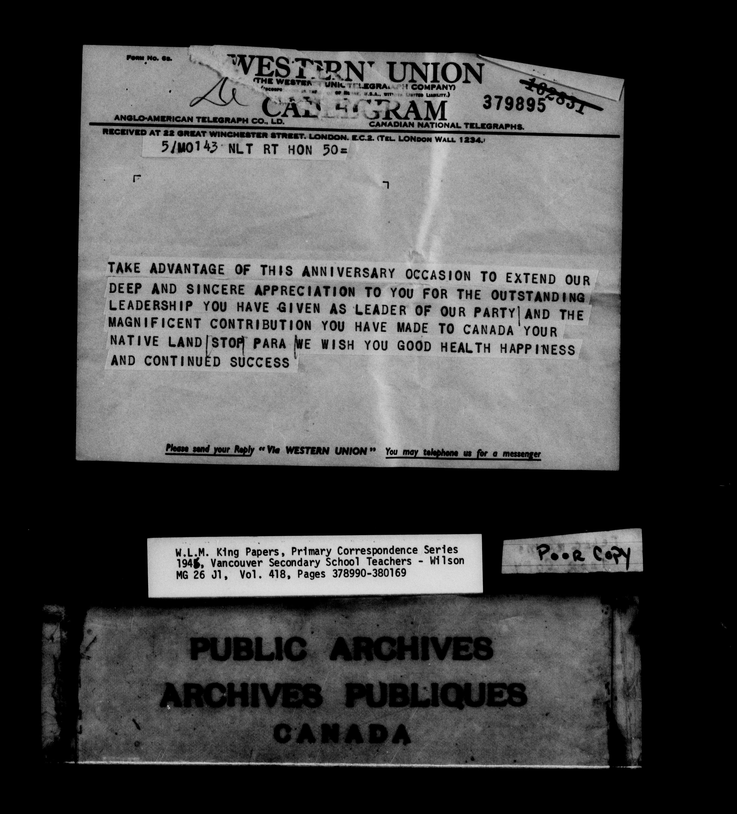 William Lyon Mackenzie King : Primary series correspondence (J1) : C-9180