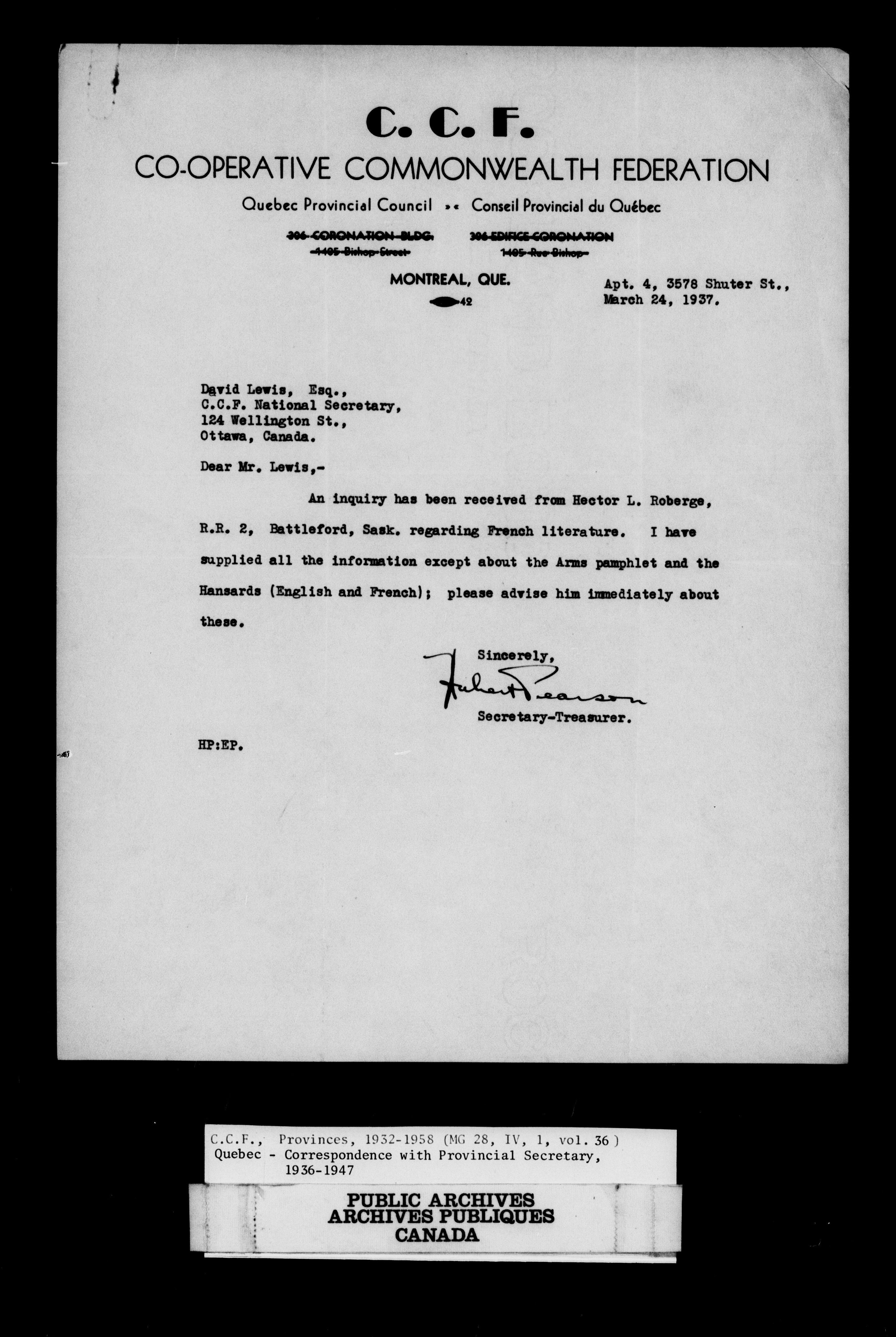 Co-operative Commonwealth Federation and New Democratic Party fonds : C-9277