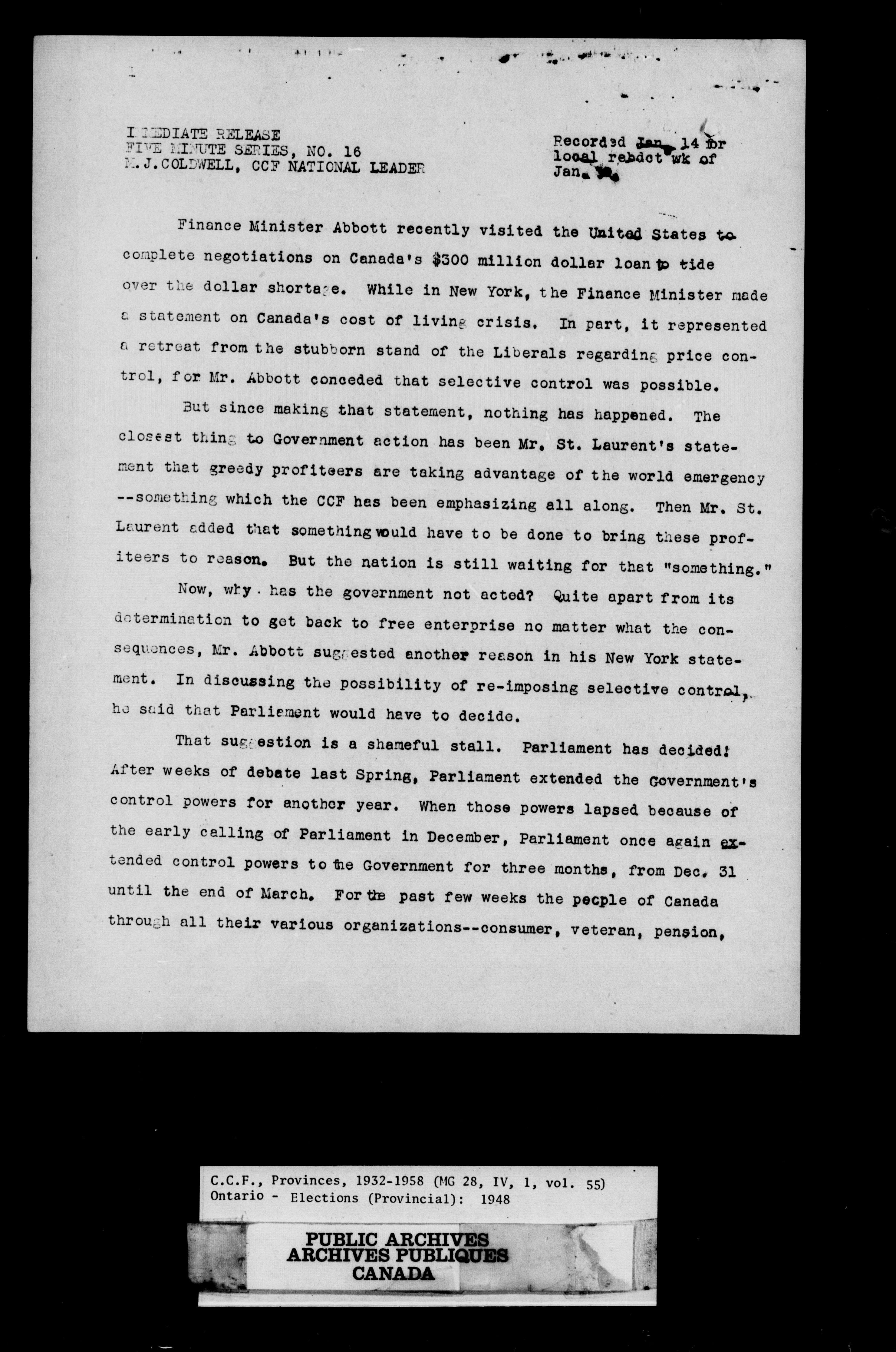 Co-operative Commonwealth Federation and New Democratic Party fonds - 9287