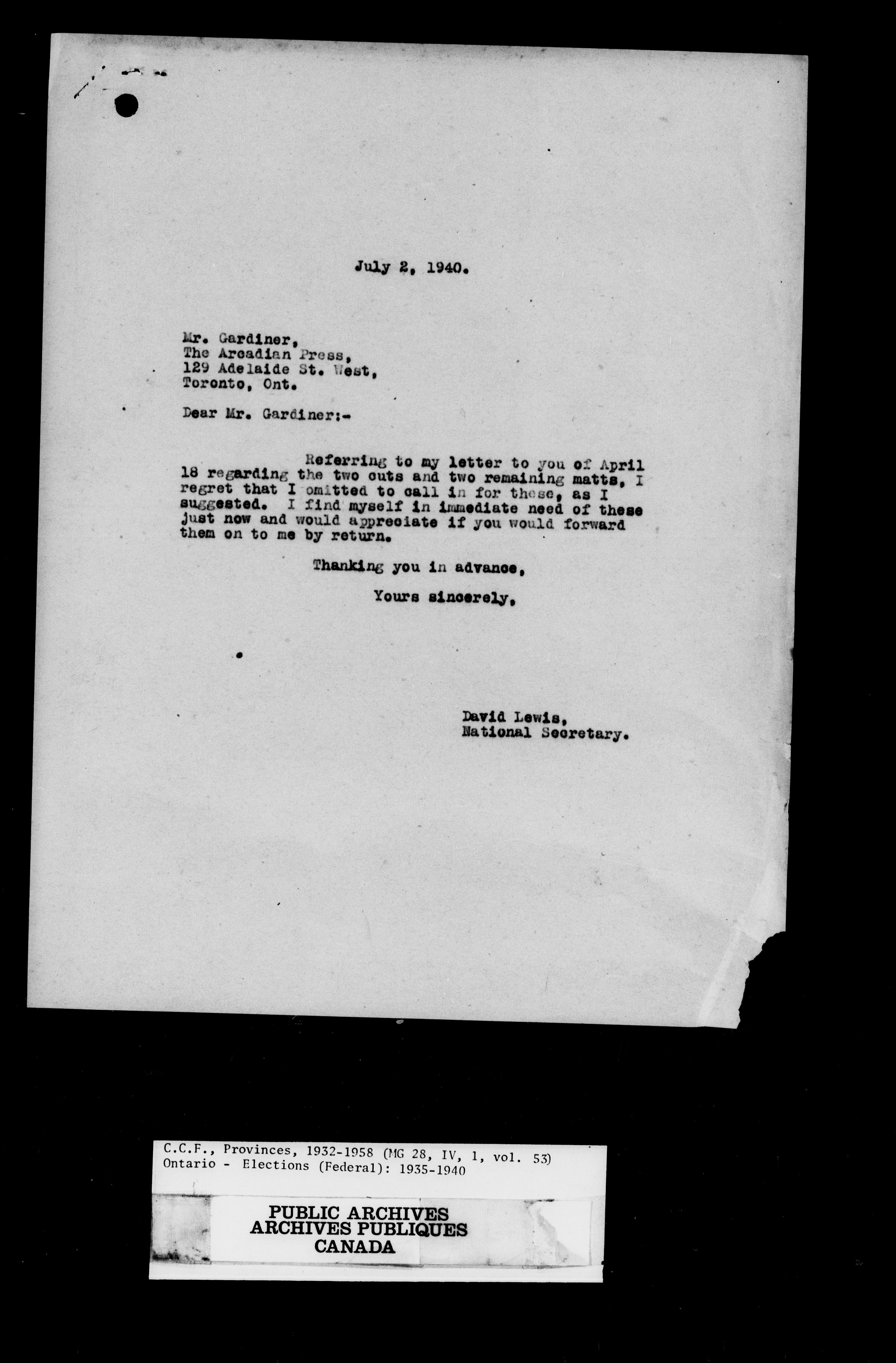 Co-operative Commonwealth Federation and New Democratic Party fonds - 9287
