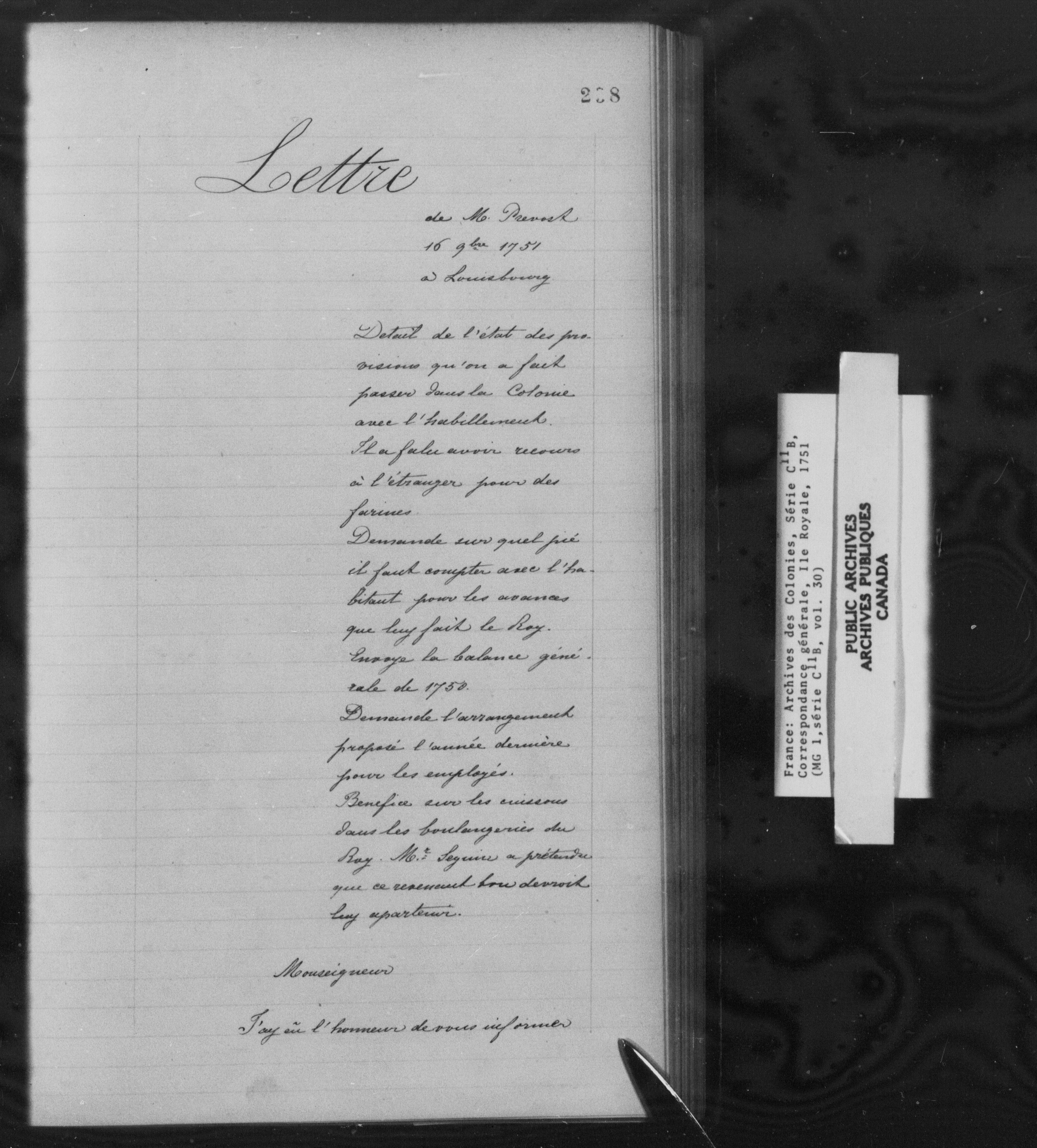 France. Fonds des Archives nationales: Série C11B. Correspondance générale; Ile Royale : C-9295