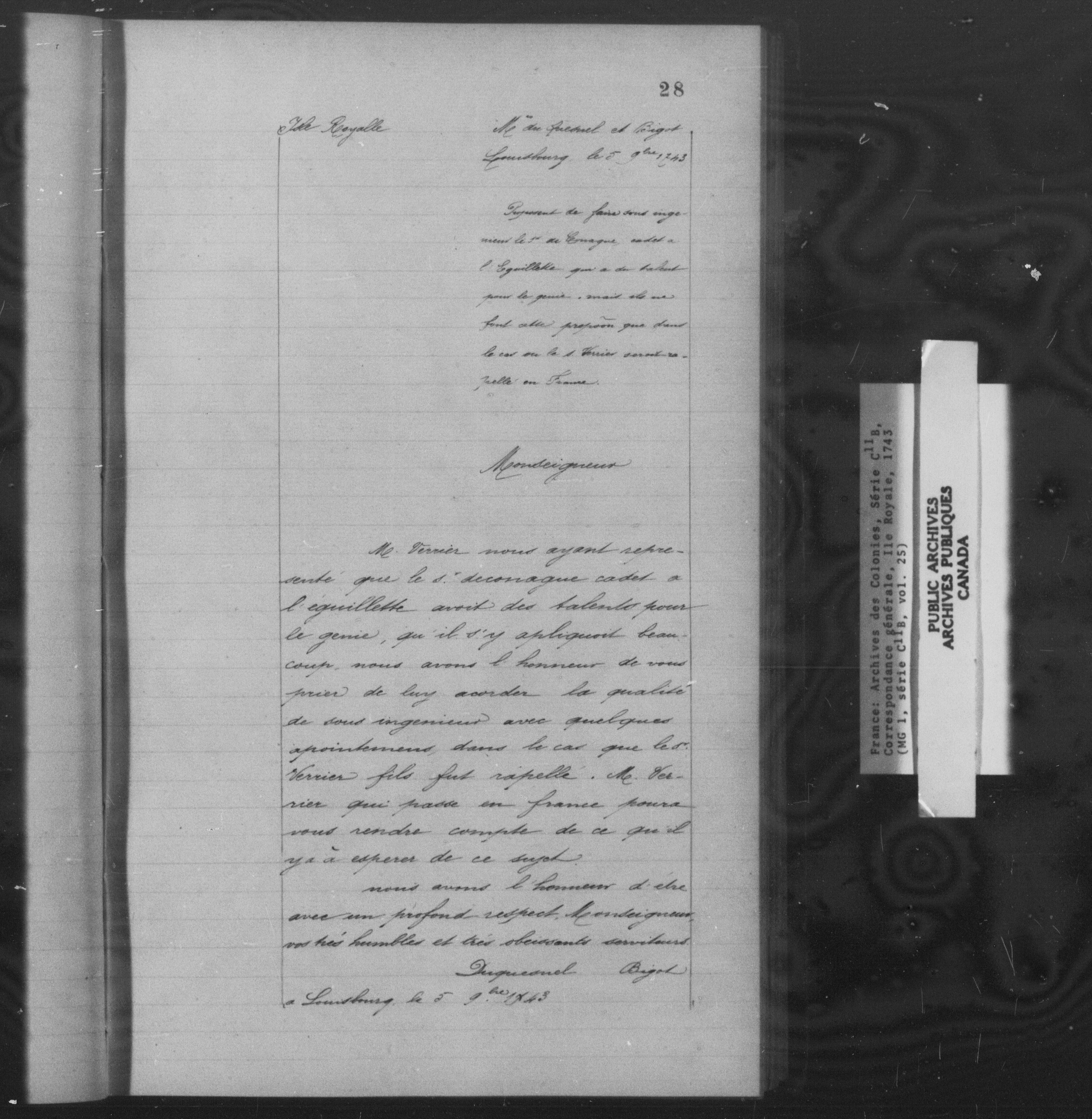 France. Fonds des Archives nationales: Série C11B. Correspondance générale; Ile Royale - 9295