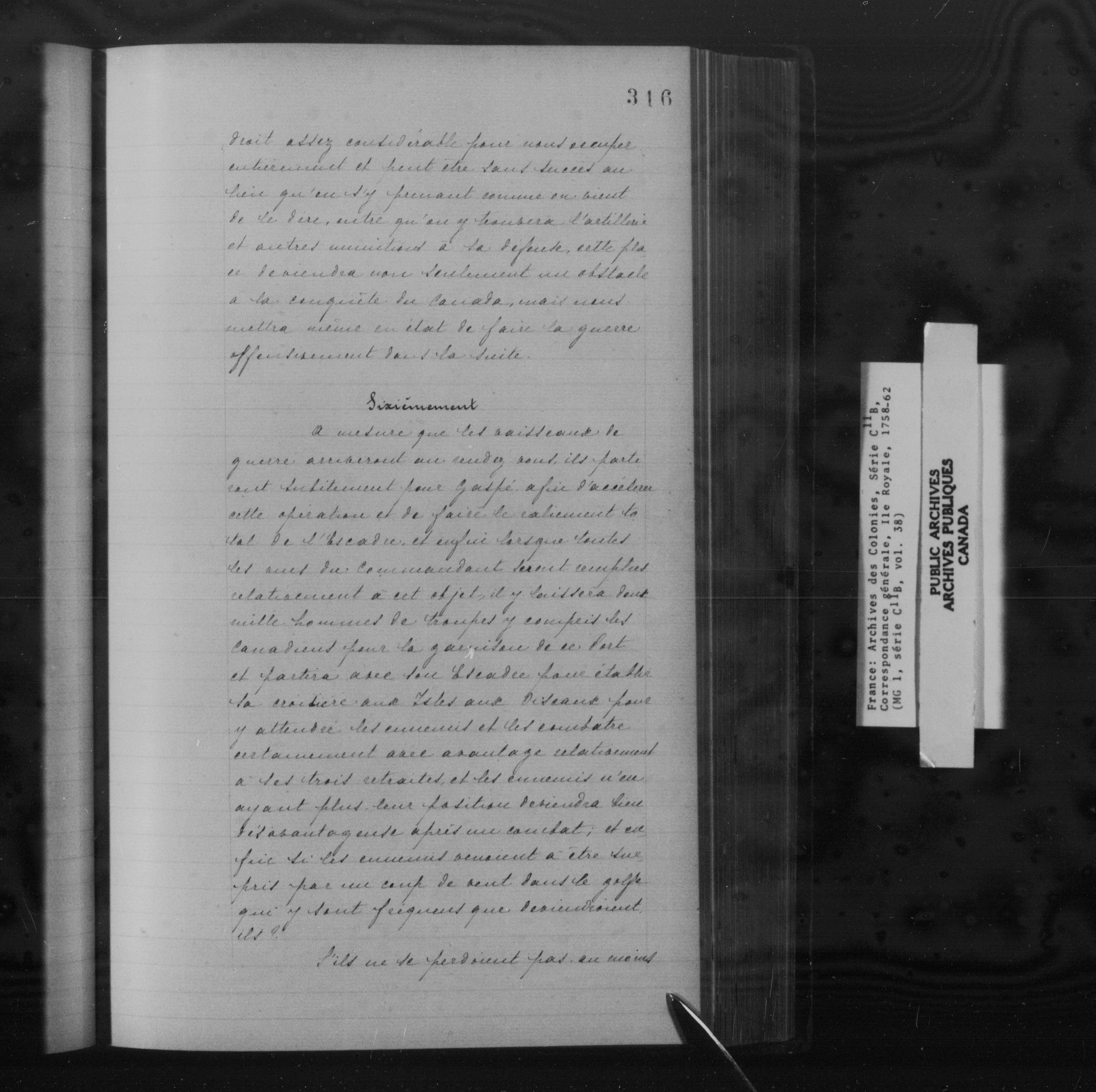 France. Fonds des Archives nationales: Série C11B. Correspondance générale; Ile Royale - 9297