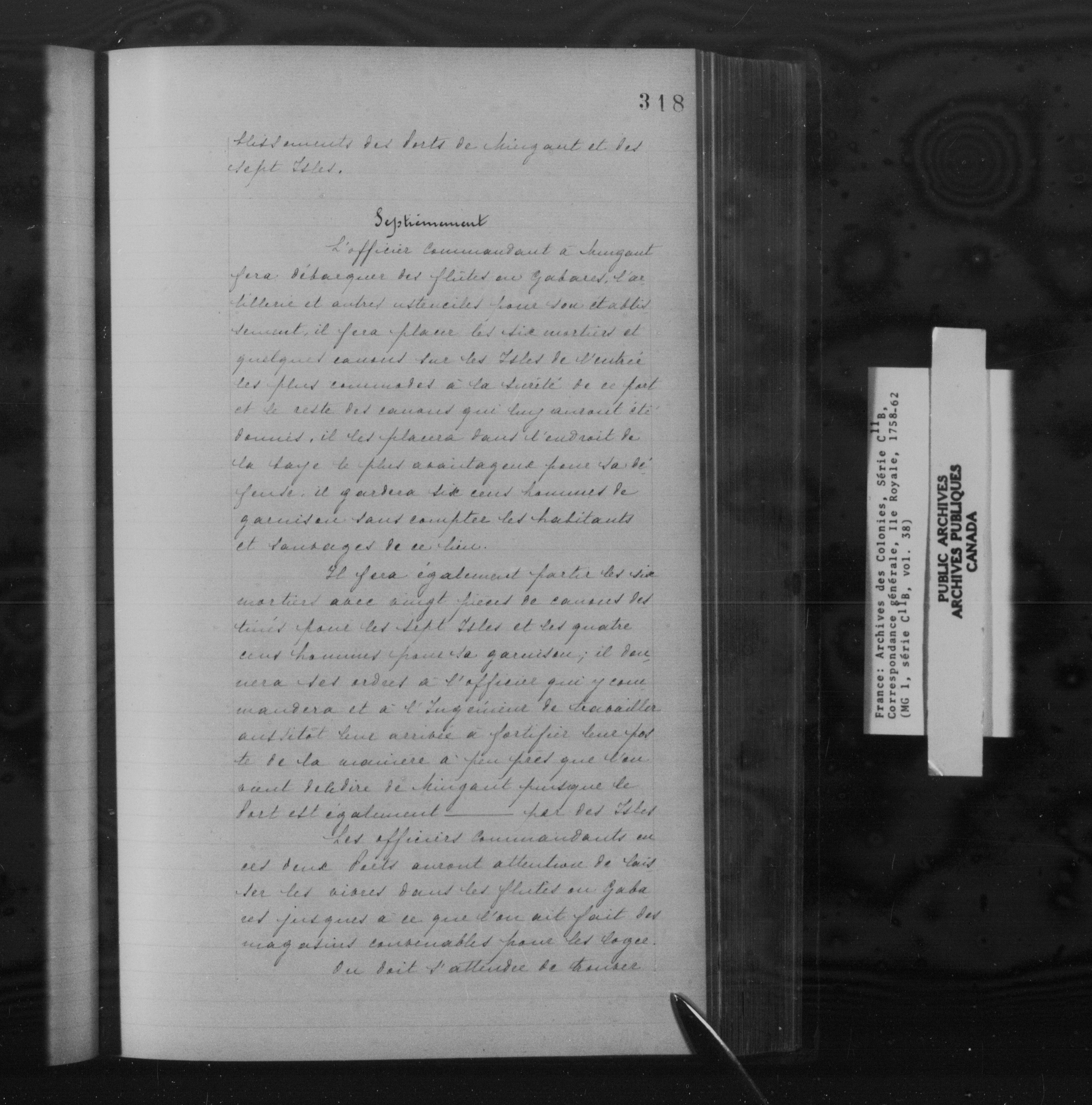 France. Fonds des Archives nationales: Série C11B. Correspondance générale; Ile Royale - 9297