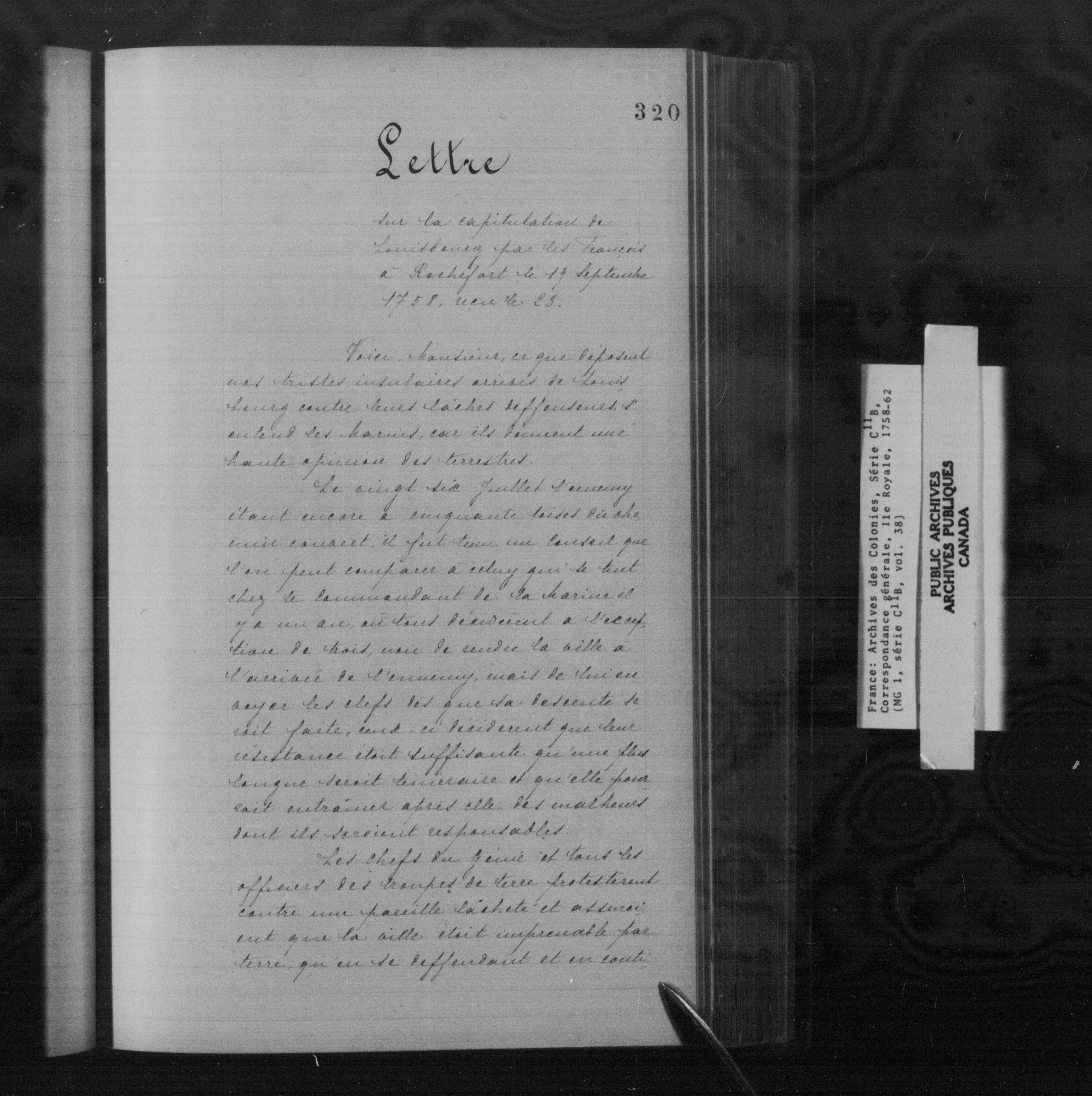 France. Fonds des Archives nationales: Série C11B. Correspondance générale; Ile Royale - 9297