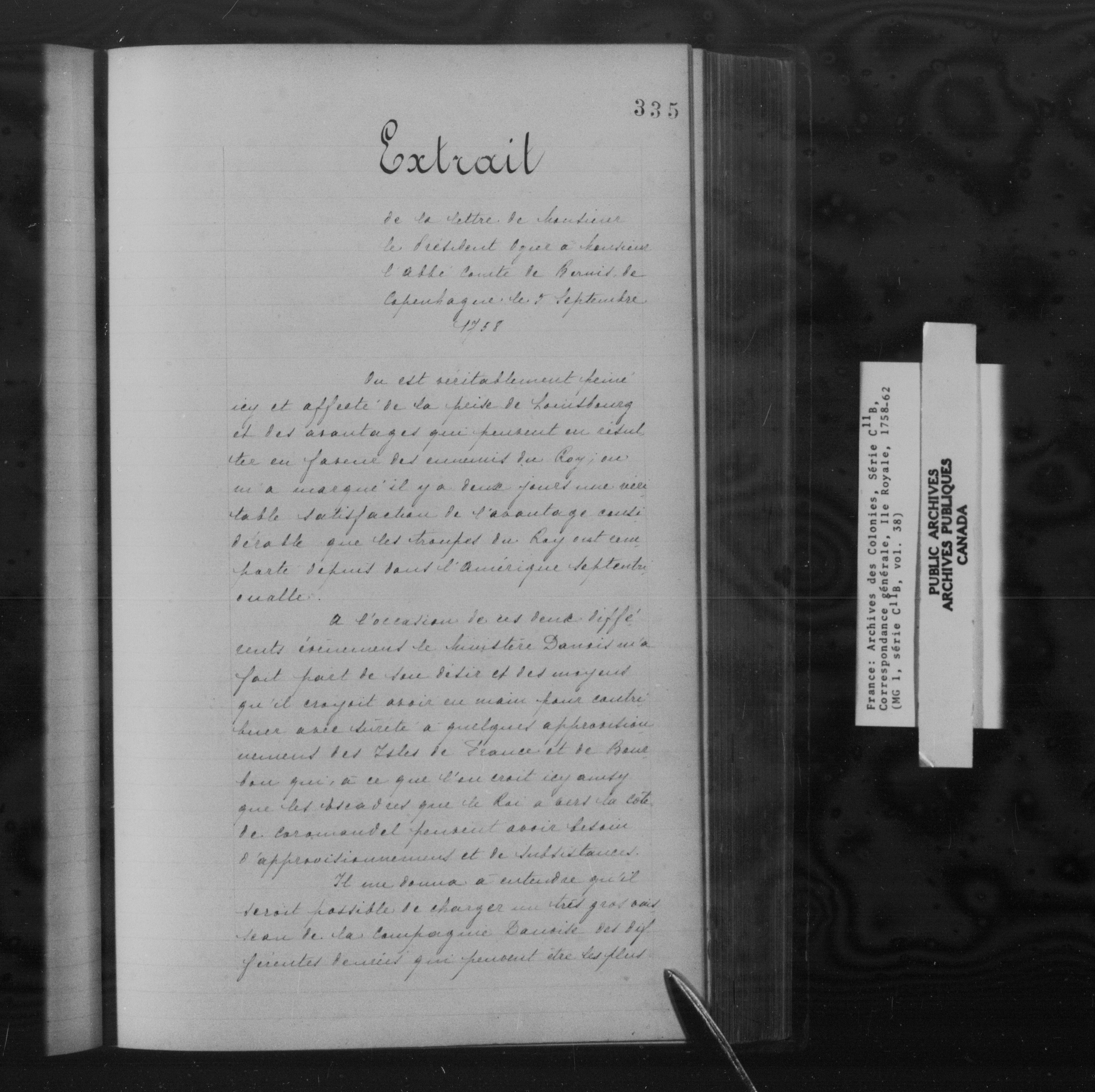 France. Fonds des Archives nationales: Série C11B. Correspondance générale; Ile Royale - 9297