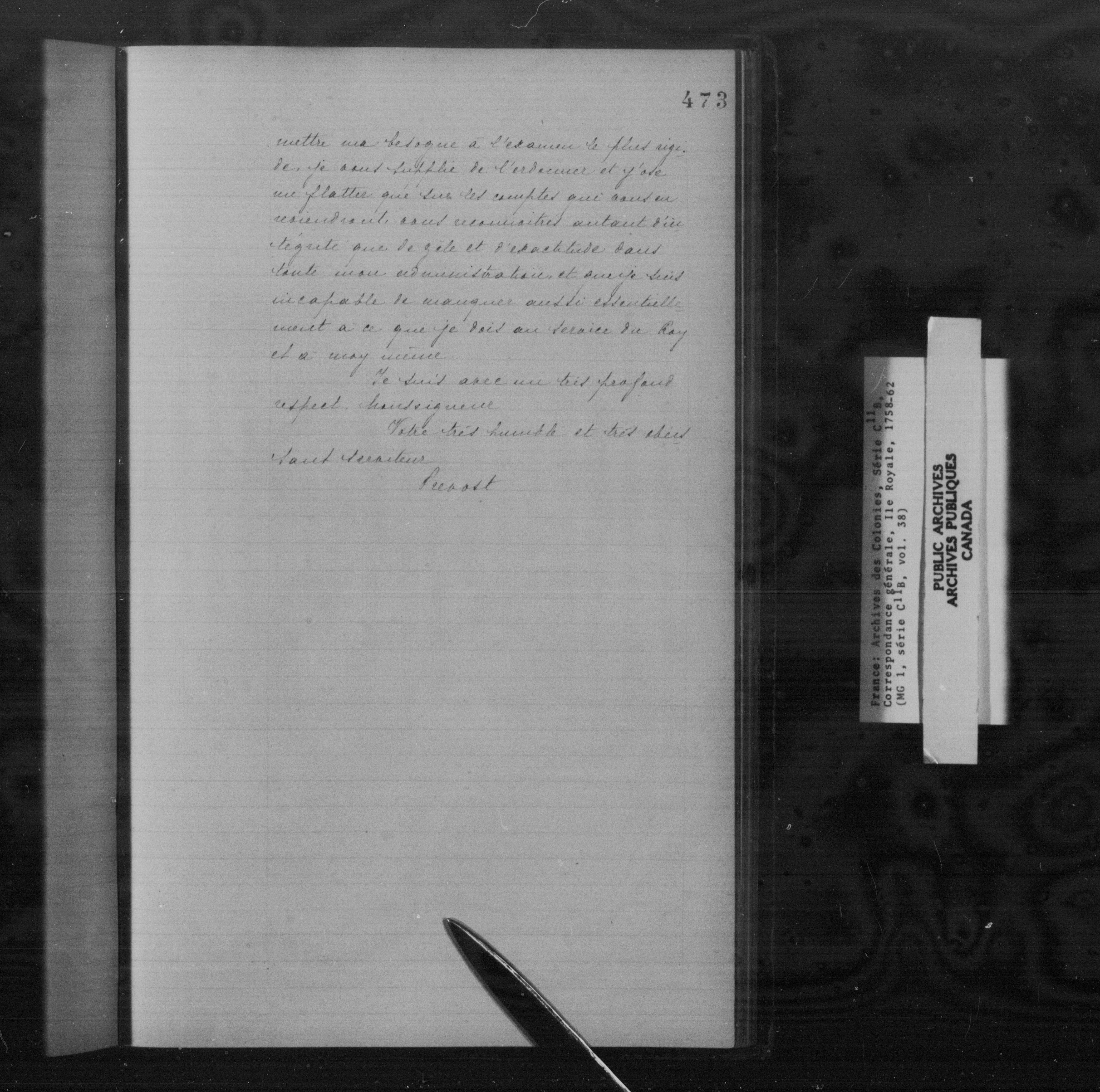 France. Fonds des Archives nationales: Série C11B. Correspondance générale; Ile Royale - 9297