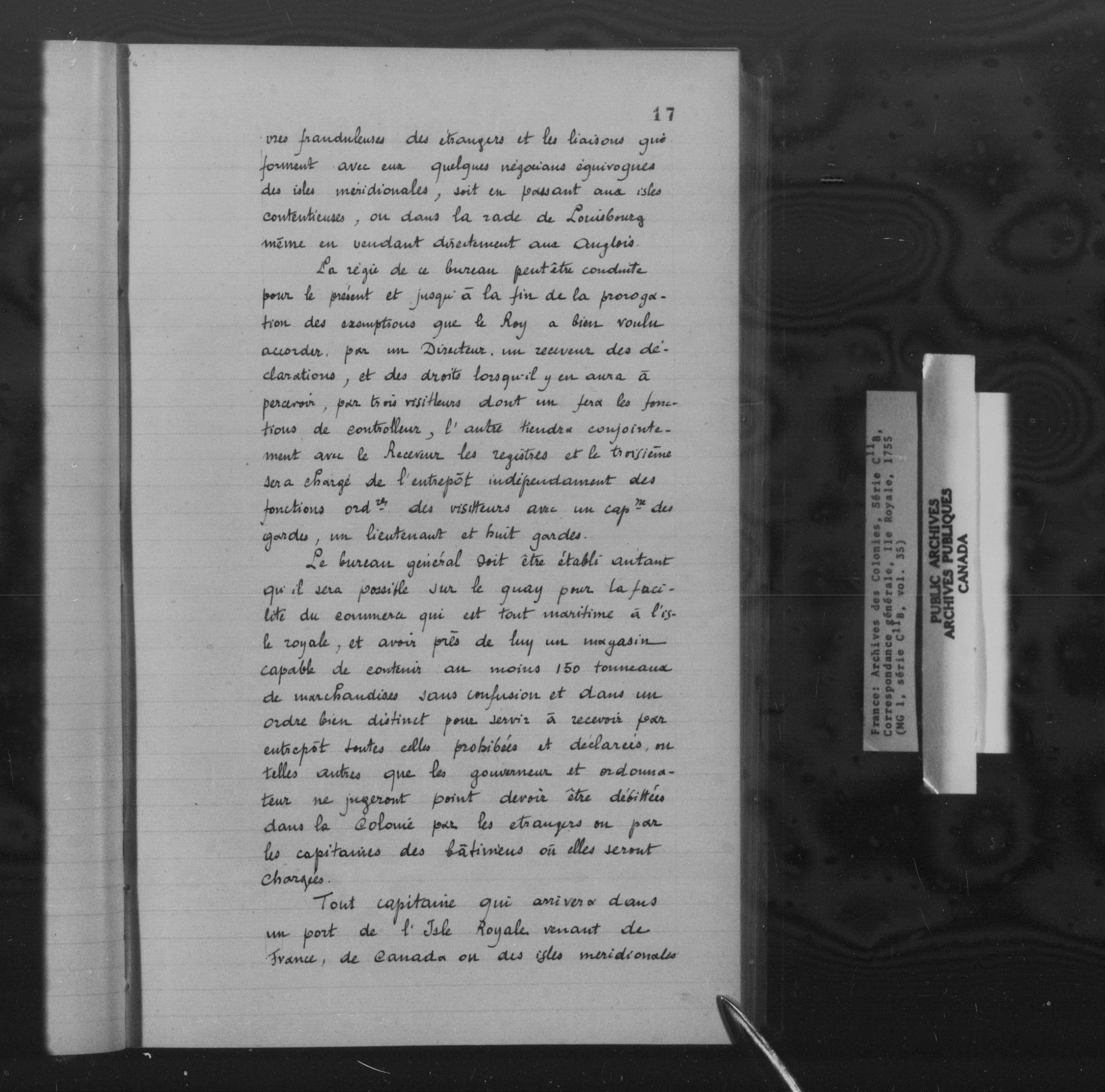 France. Fonds des Archives nationales: Série C11B. Correspondance générale; Ile Royale - 9297