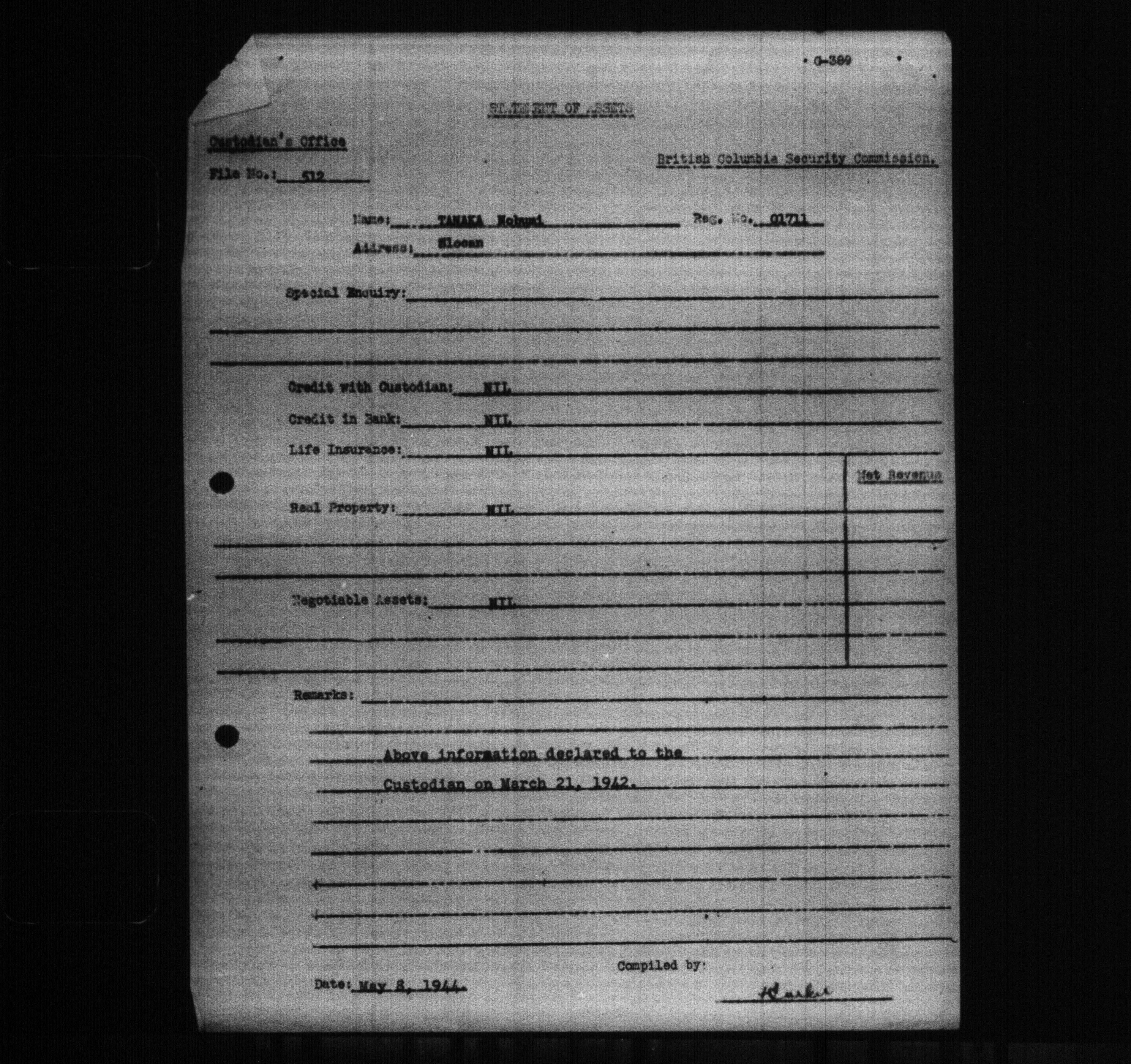 Office of the Custodian of Enemy Property, Administration of the Affairs of Persons of Japanese race - C-9307
