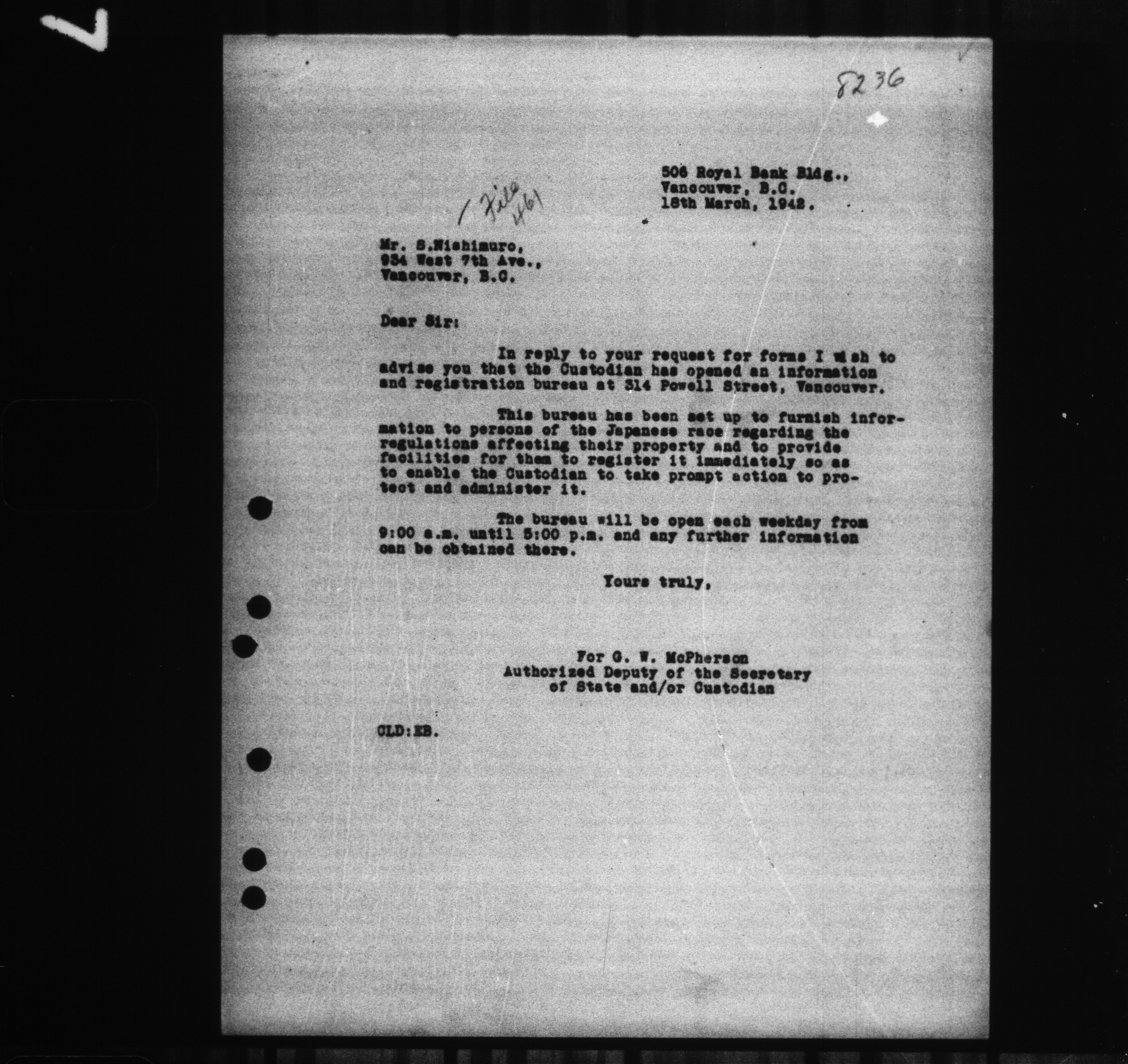 Office of the Custodian of Enemy Property, Vancouver Branch : Office files