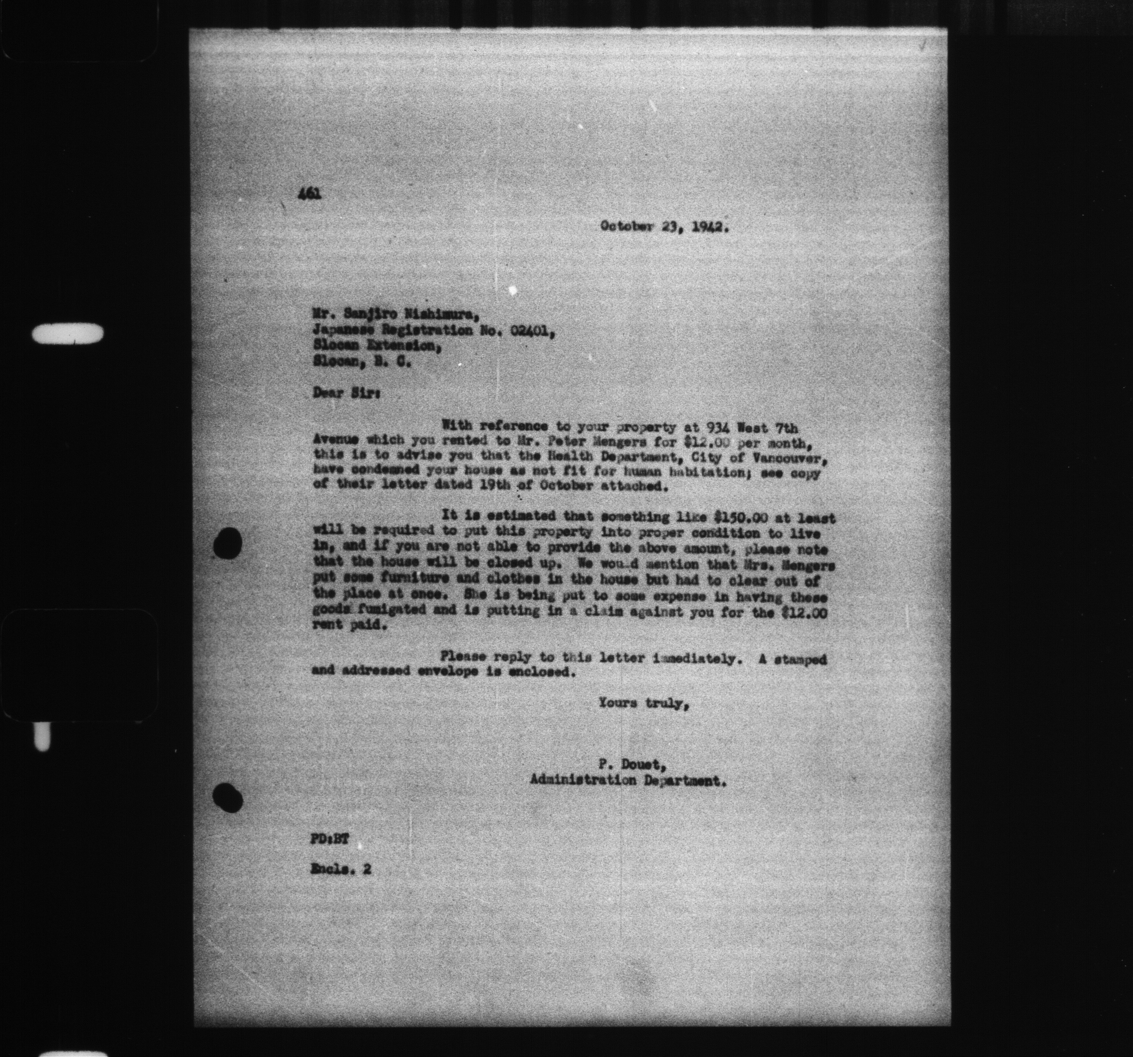 Office of the Custodian of Enemy Property, Administration of the Affairs of Persons of Japanese race - C-9307