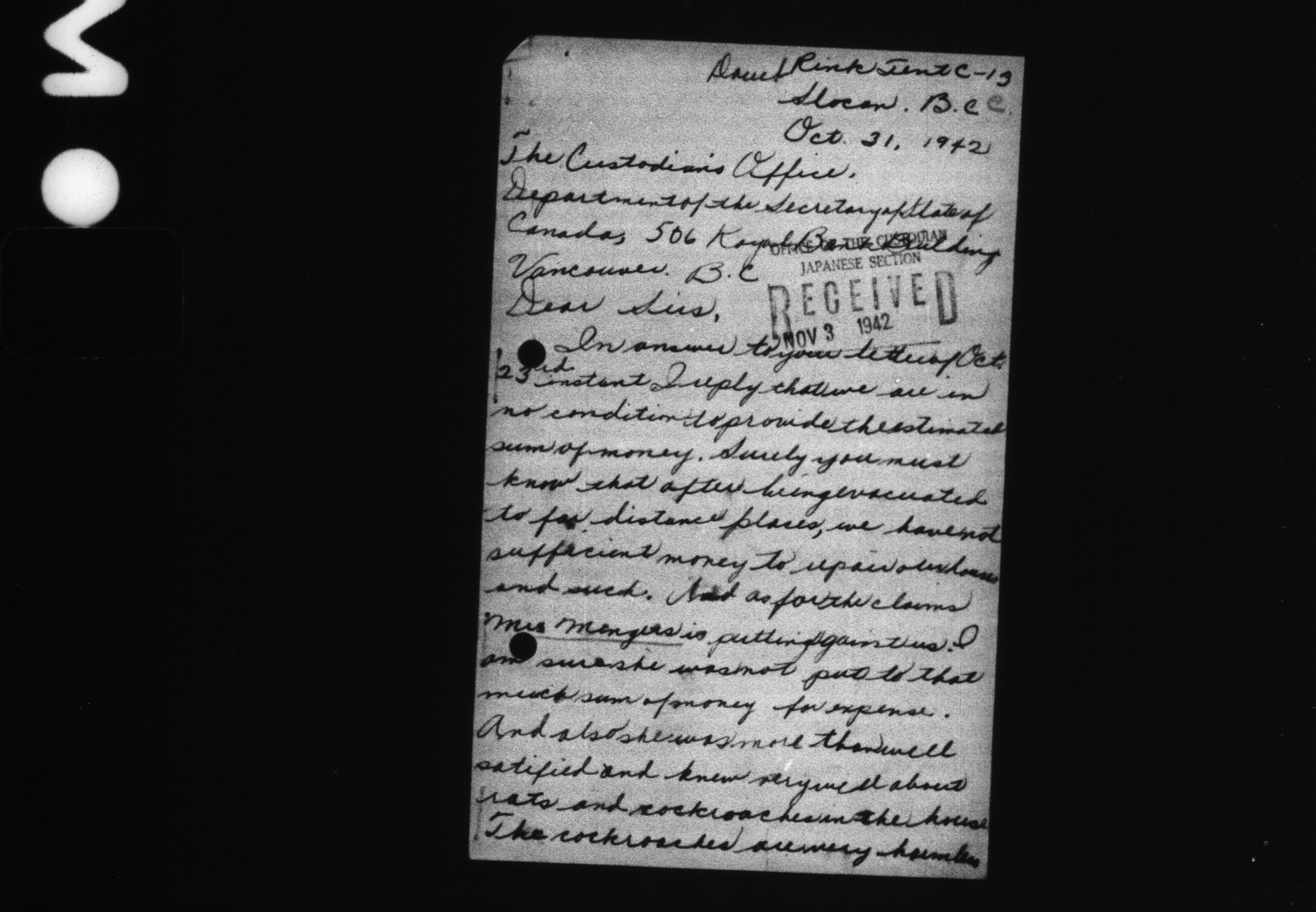 Office of the Custodian of Enemy Property, Vancouver Branch : Office files