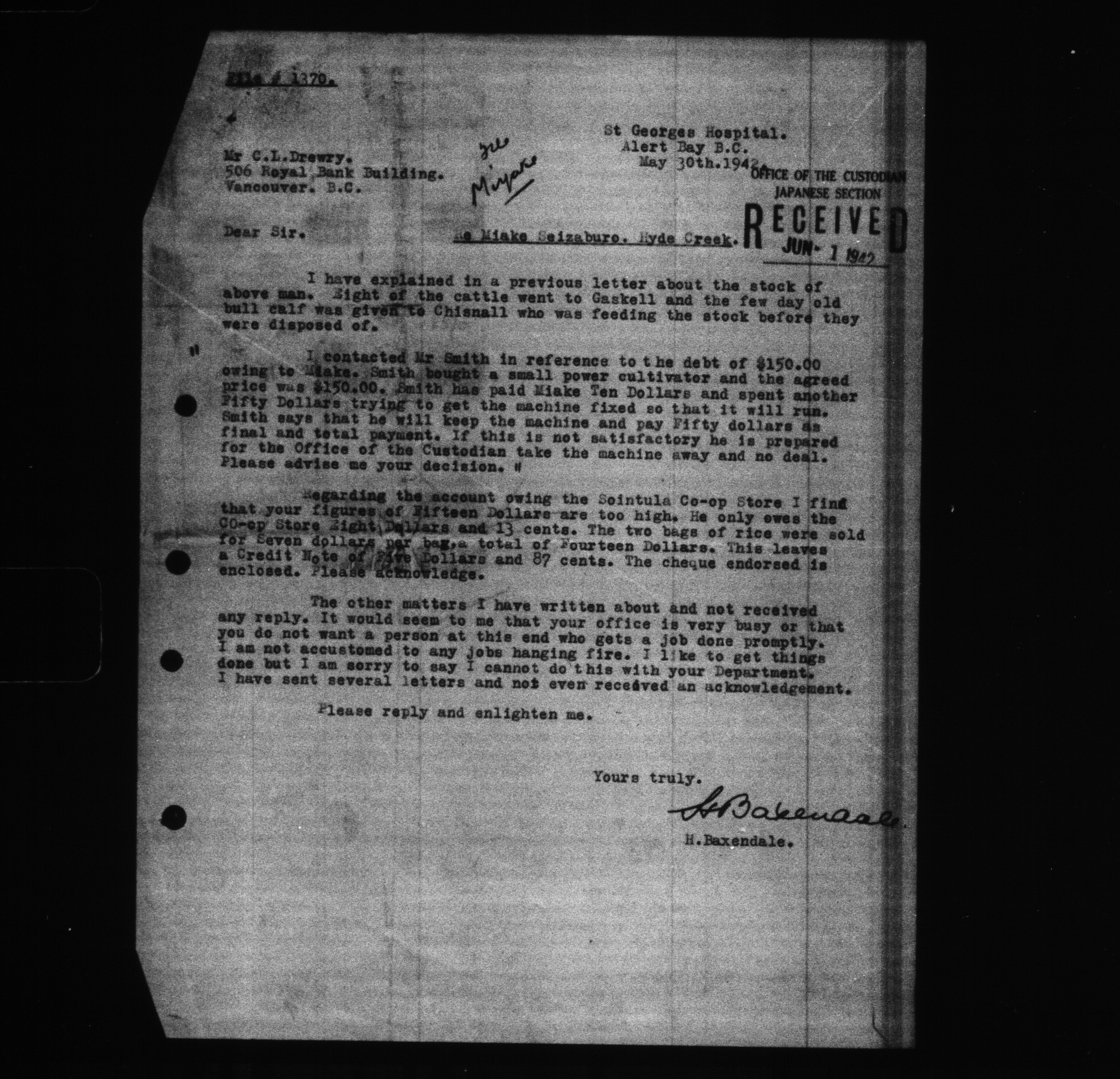 Office of the Custodian of Enemy Property. Vancouver Office : office files : C-9318