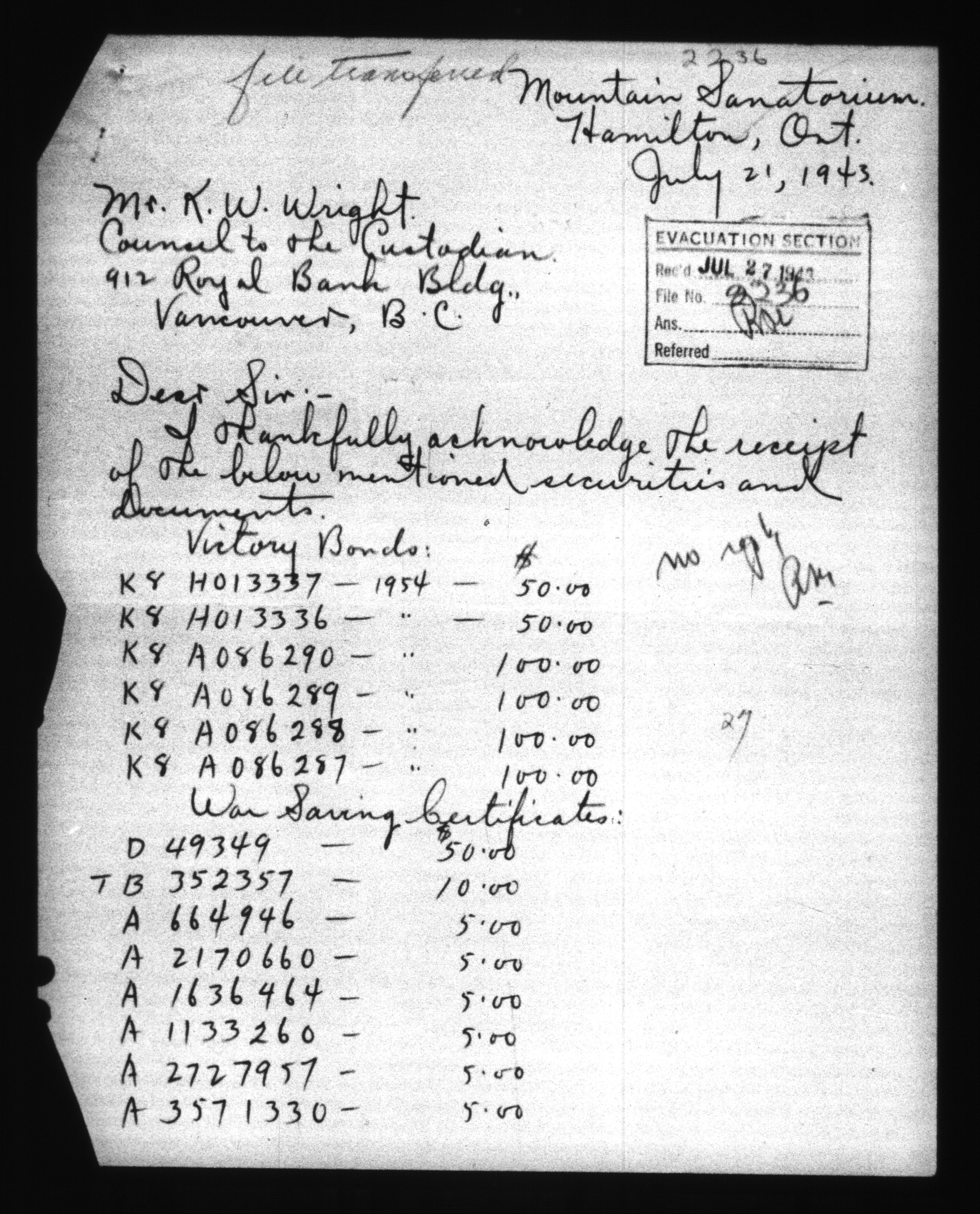 Office of the Custodian of Enemy Property, Administration of the Affairs of Persons of Japanese race - 9328