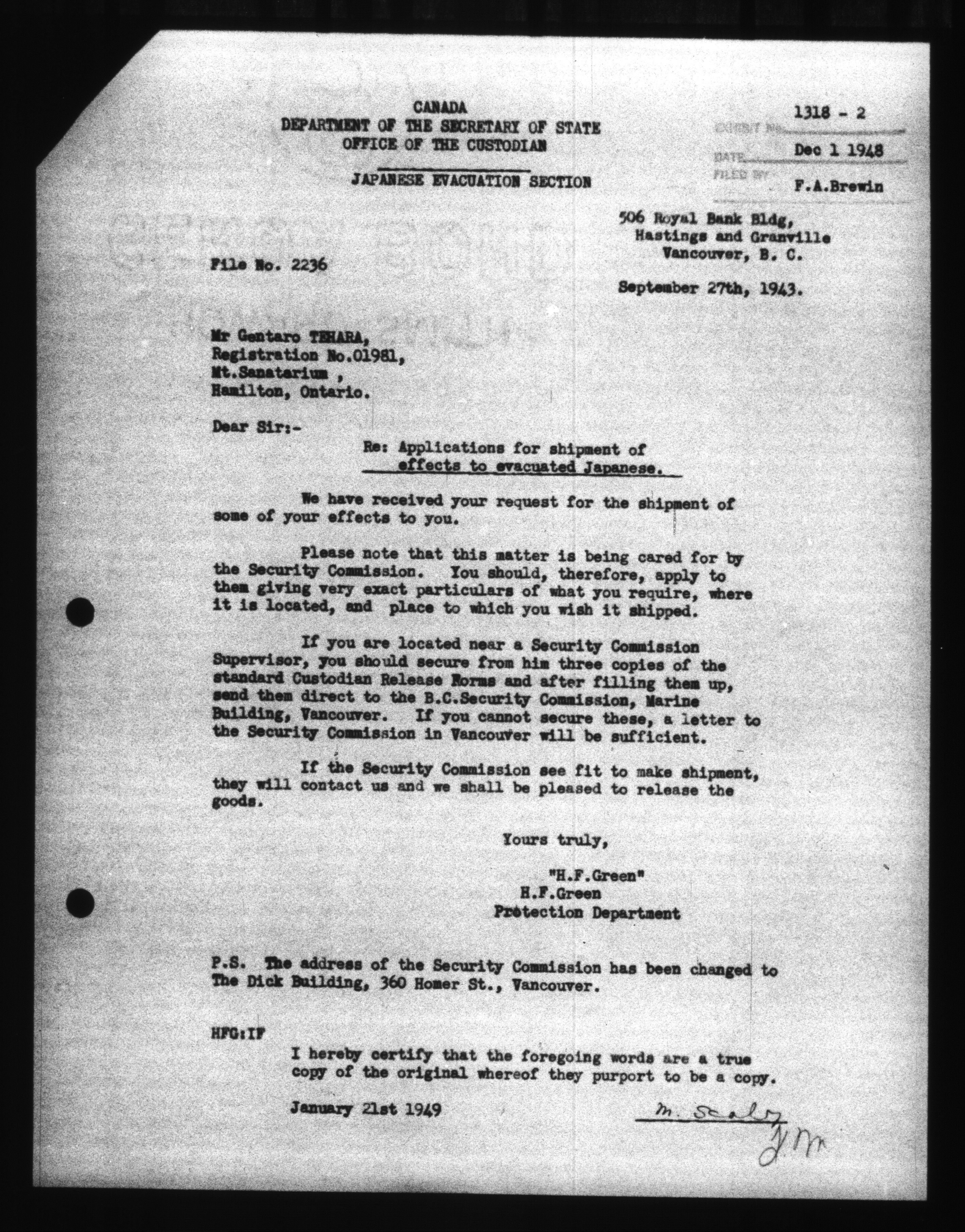 Office of the Custodian of Enemy Property, Administration of the Affairs of Persons of Japanese race - 9328