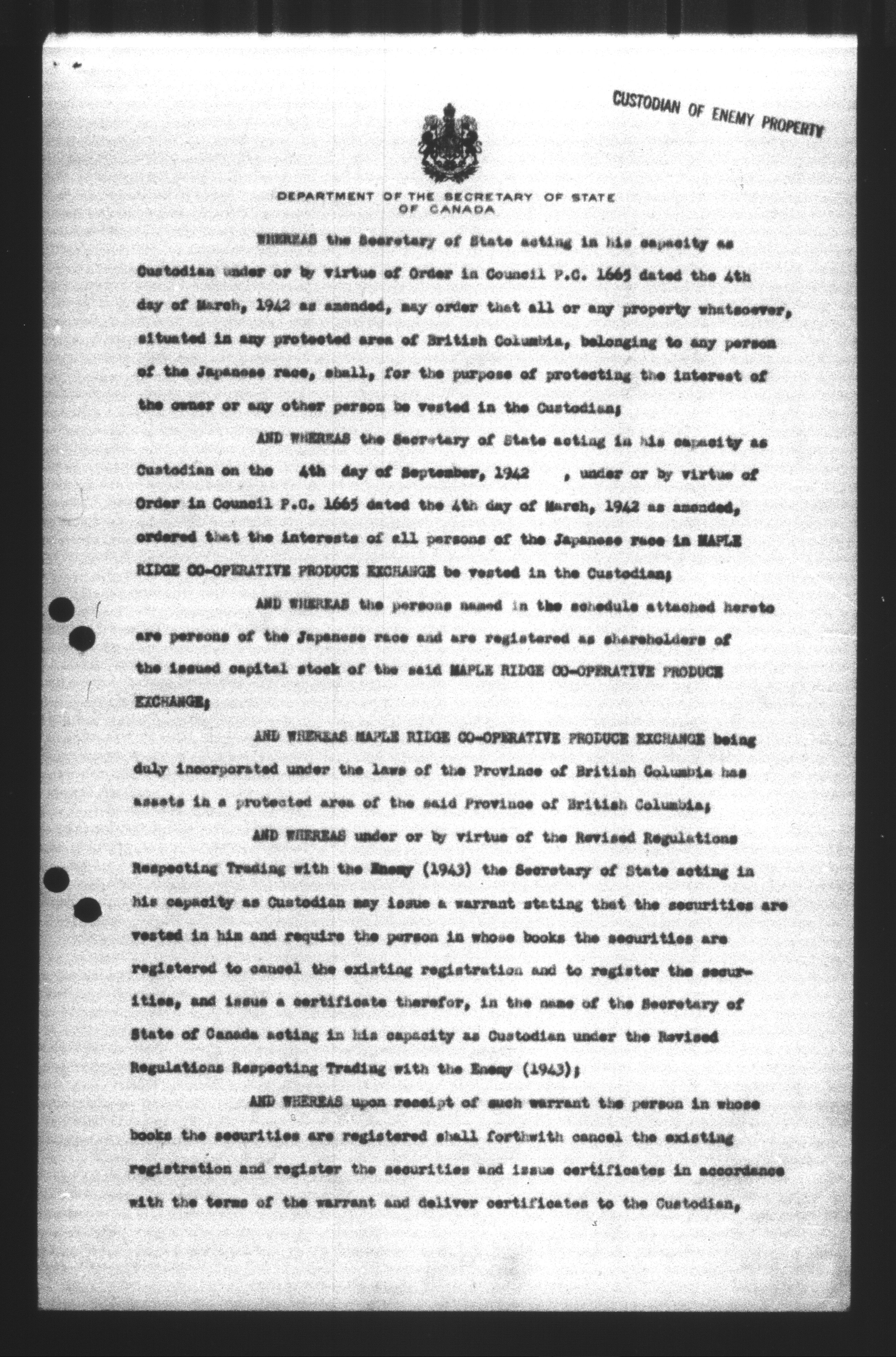 Office of the Custodian of Enemy Property. Vancouver Office : office files : C-9434