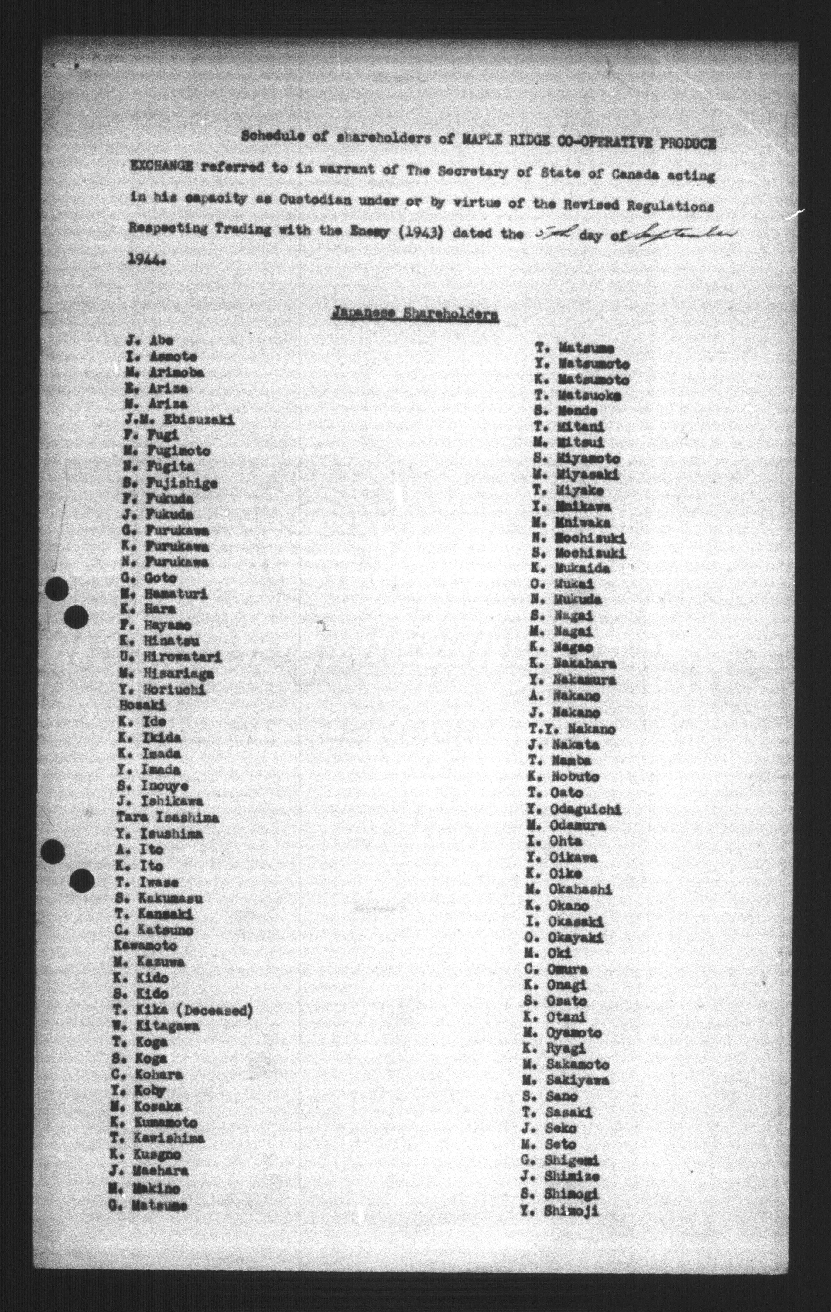 Office of the Custodian of Enemy Property, Administration of the Affairs of Persons of Japanese race - 9434