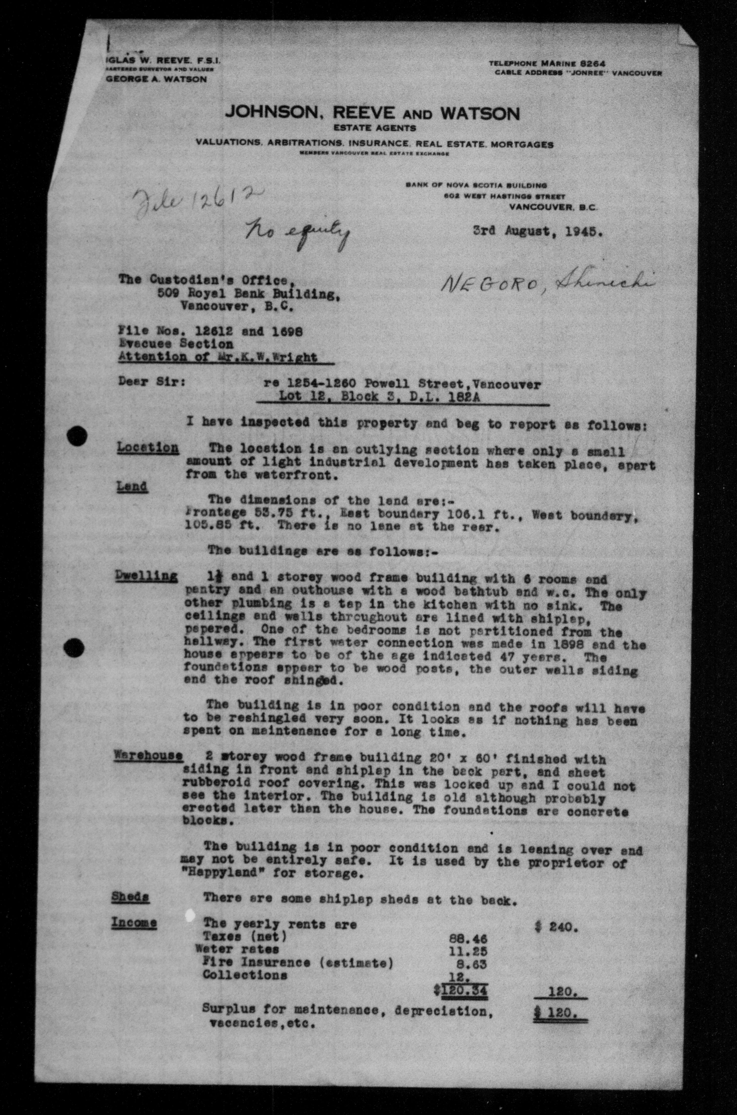 Office of the Custodian of Enemy Property. Vancouver Office : office files : C-9467