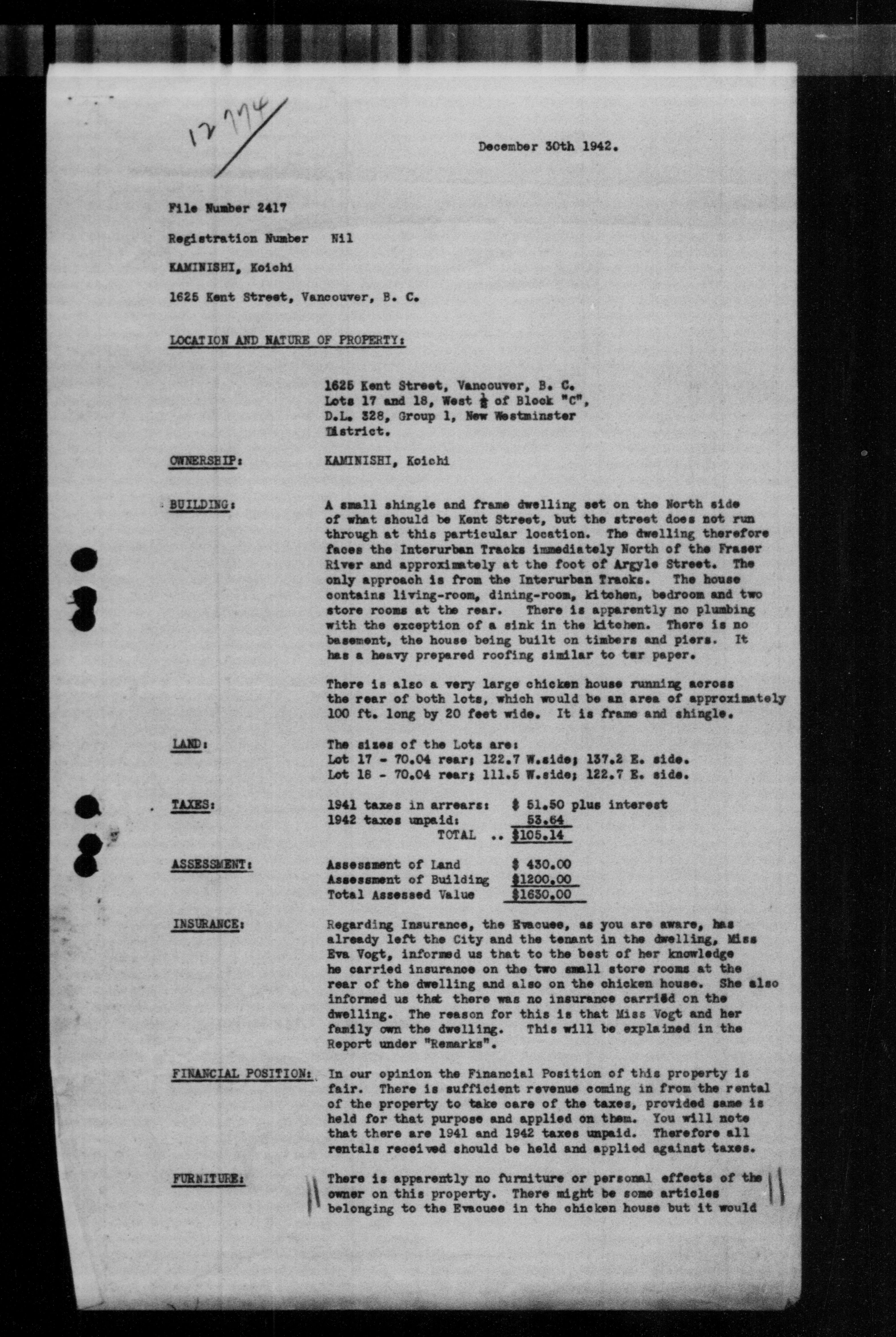 Office of the Custodian of Enemy Property. Vancouver Office : office files : C-9467