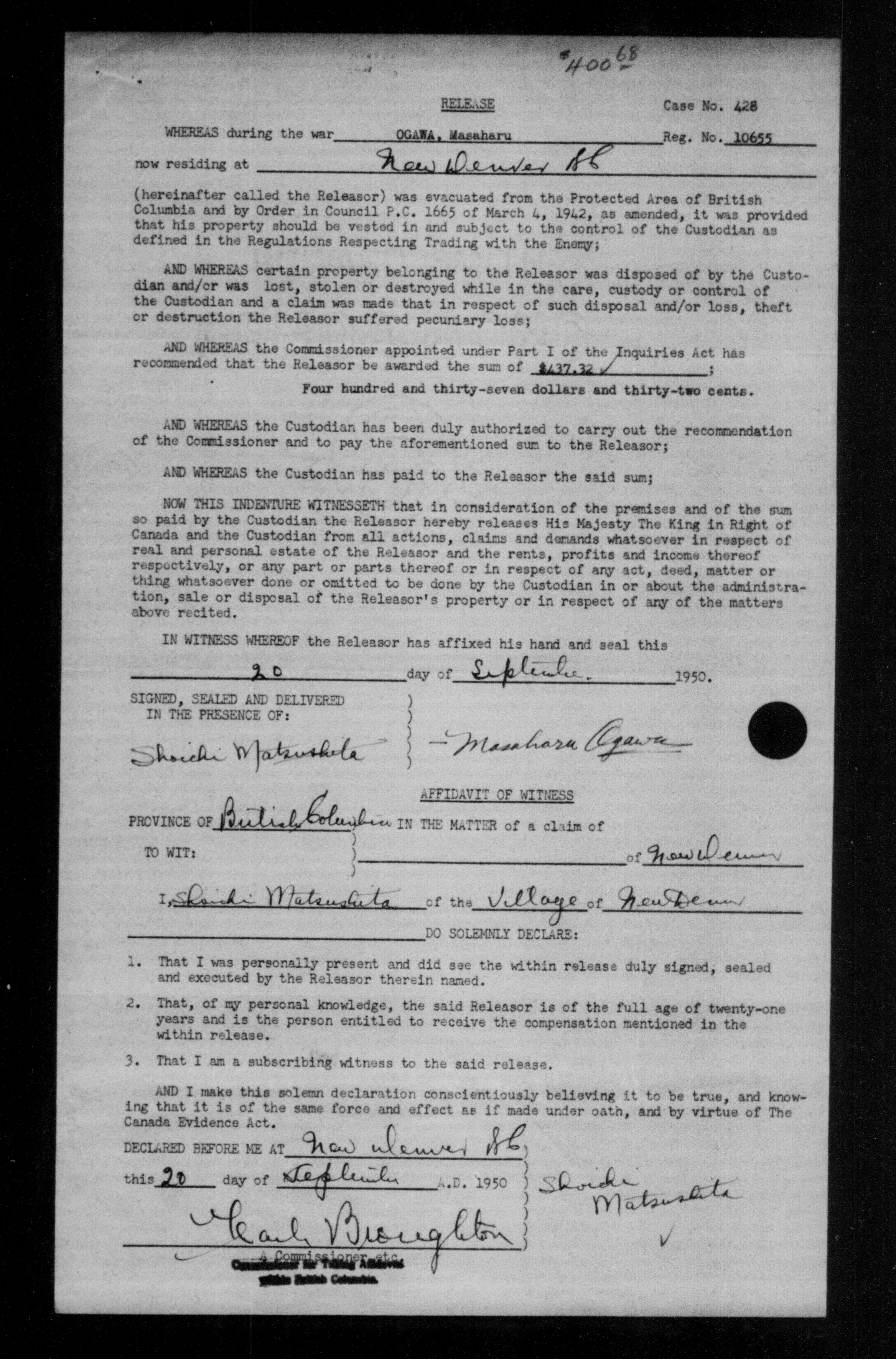 Office of the Custodian of Enemy Property, Administration of the Affairs of Persons of Japanese race - 9468