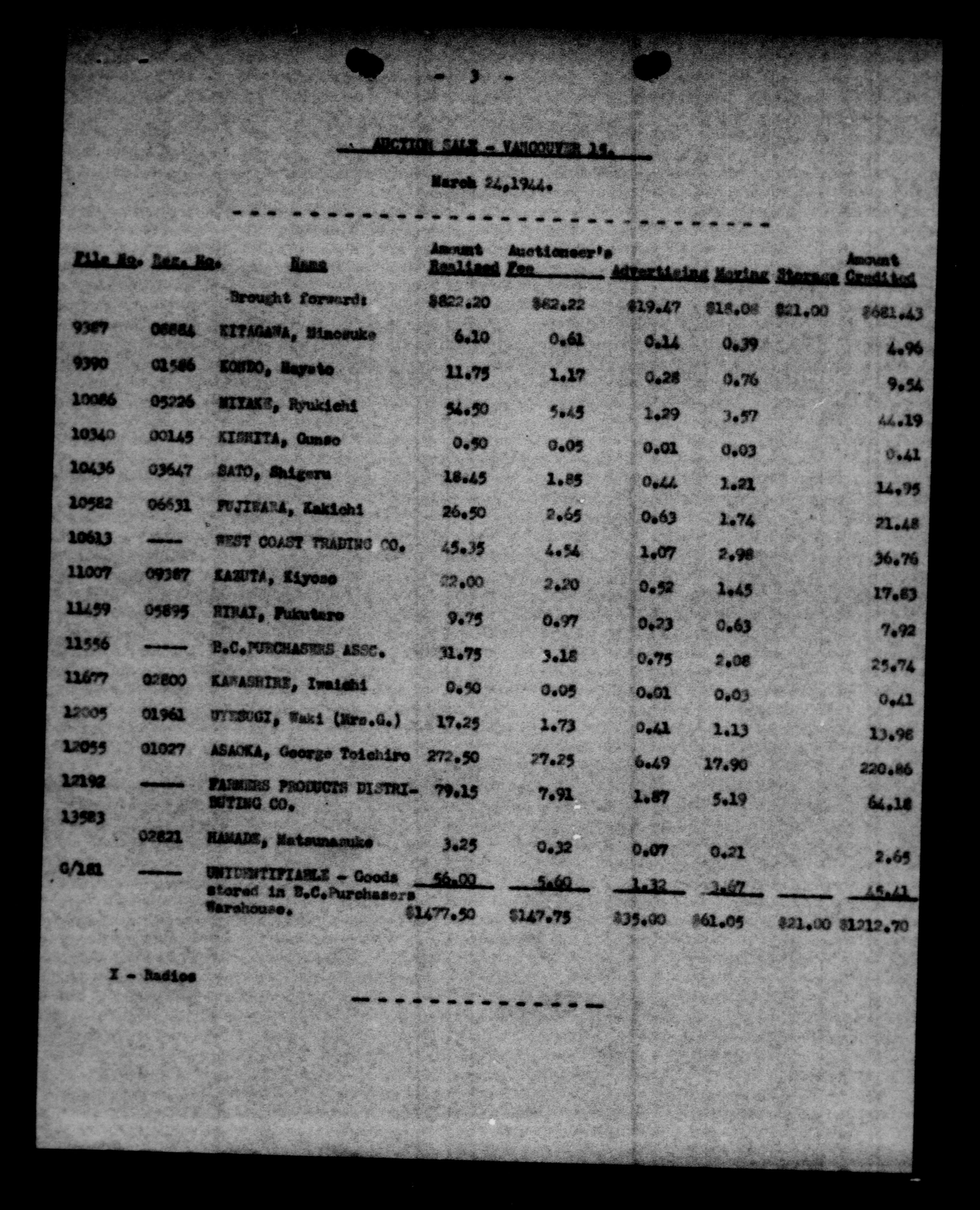 Office of the Custodian of Enemy Property, Vancouver Branch: Office files - 9472