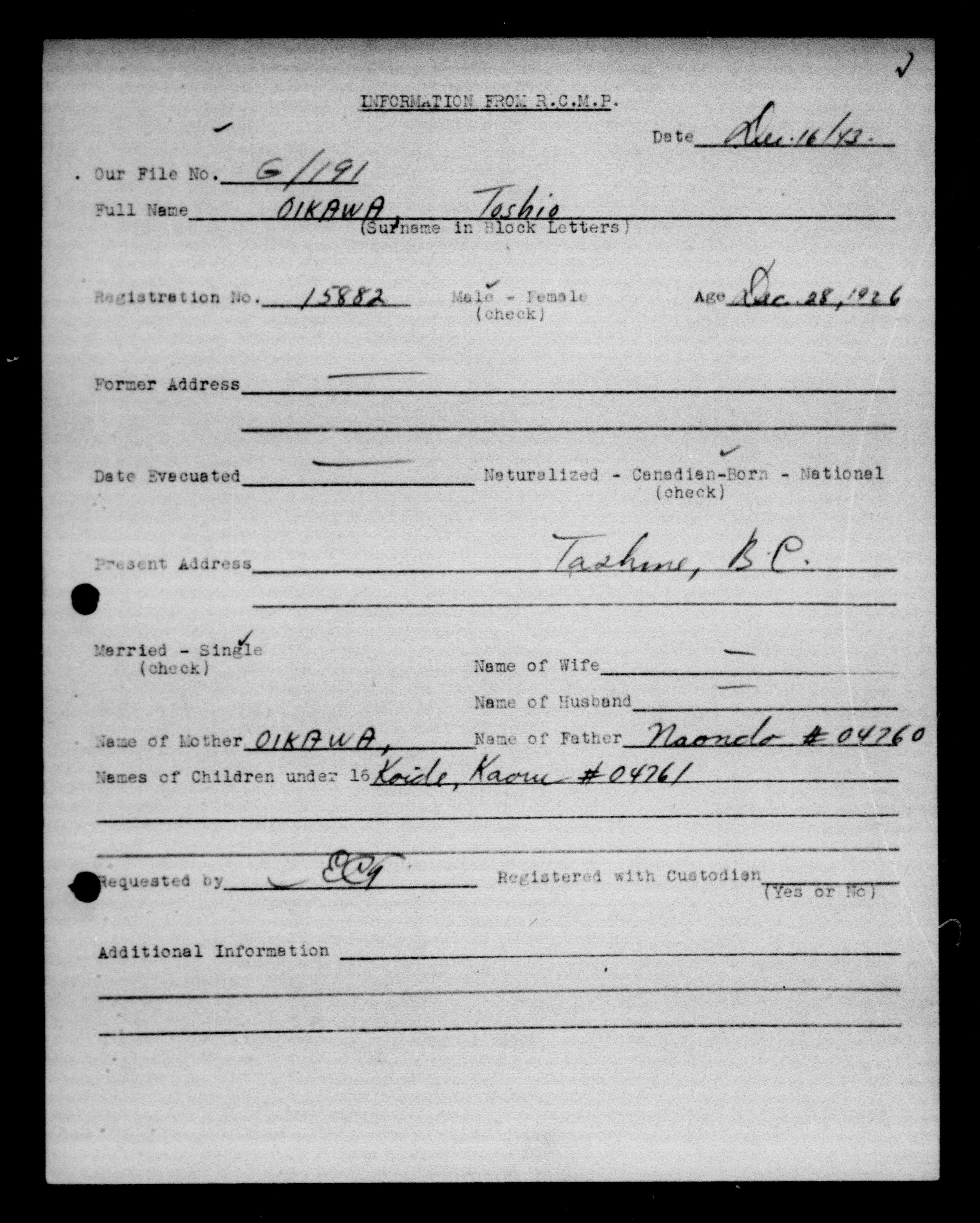 Office of the Custodian of Enemy Property, Vancouver Branch: Office files - 9472