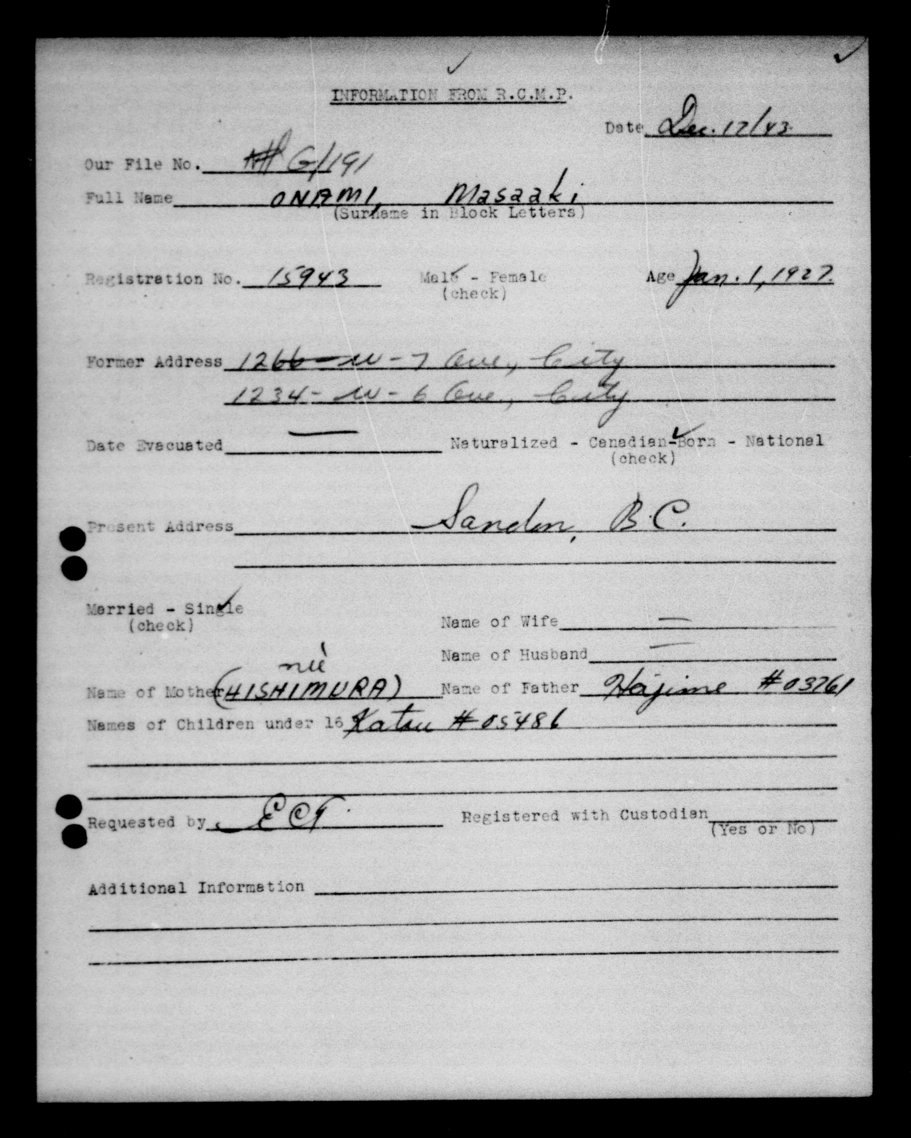 Office of the Custodian of Enemy Property. Vancouver Office : office files : C-9472