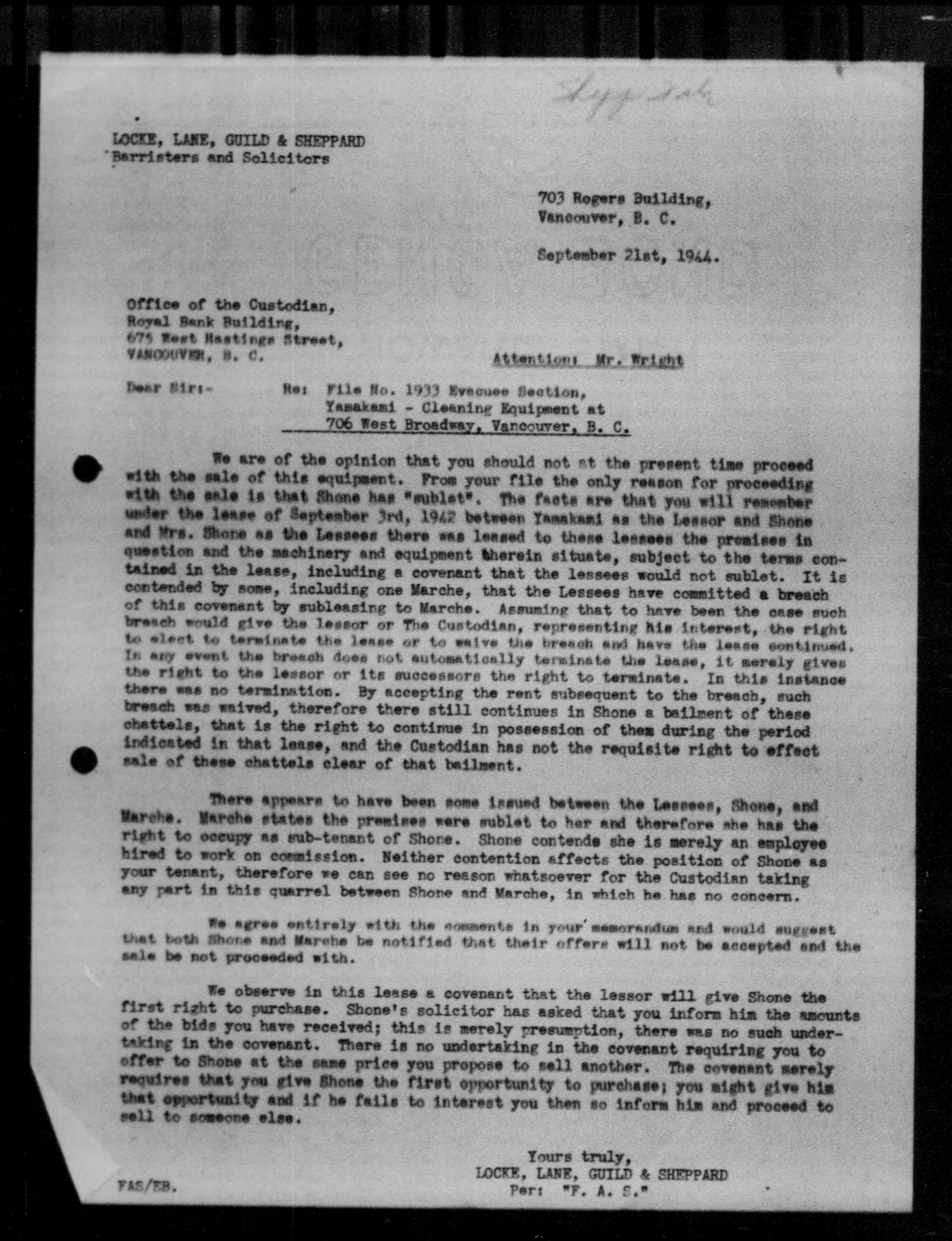 Office of the Custodian of Enemy Property, Administration of the Affairs of Persons of Japanese race - 9476