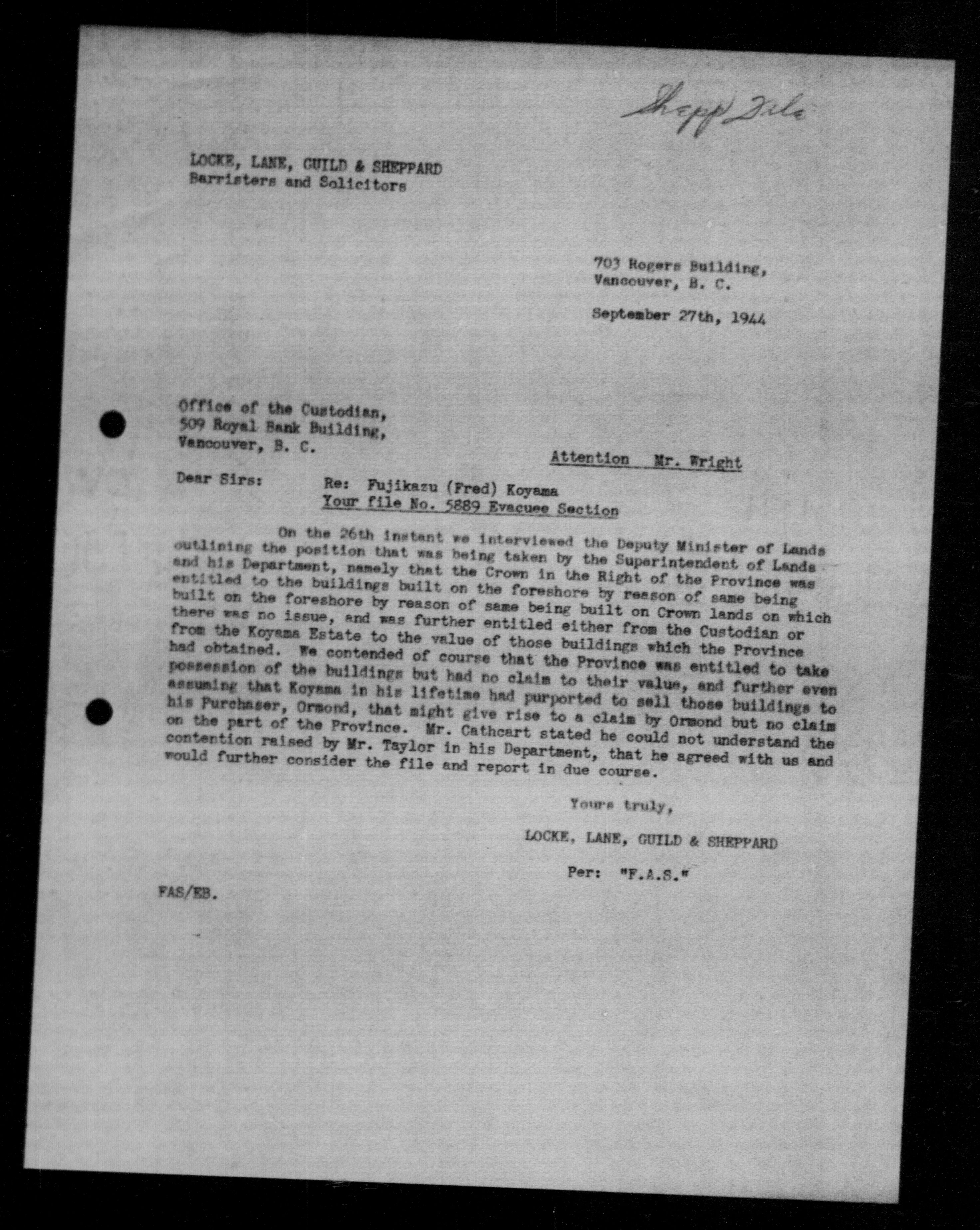 Office of the Custodian of Enemy Property, Administration of the Affairs of Persons of Japanese race - 9476
