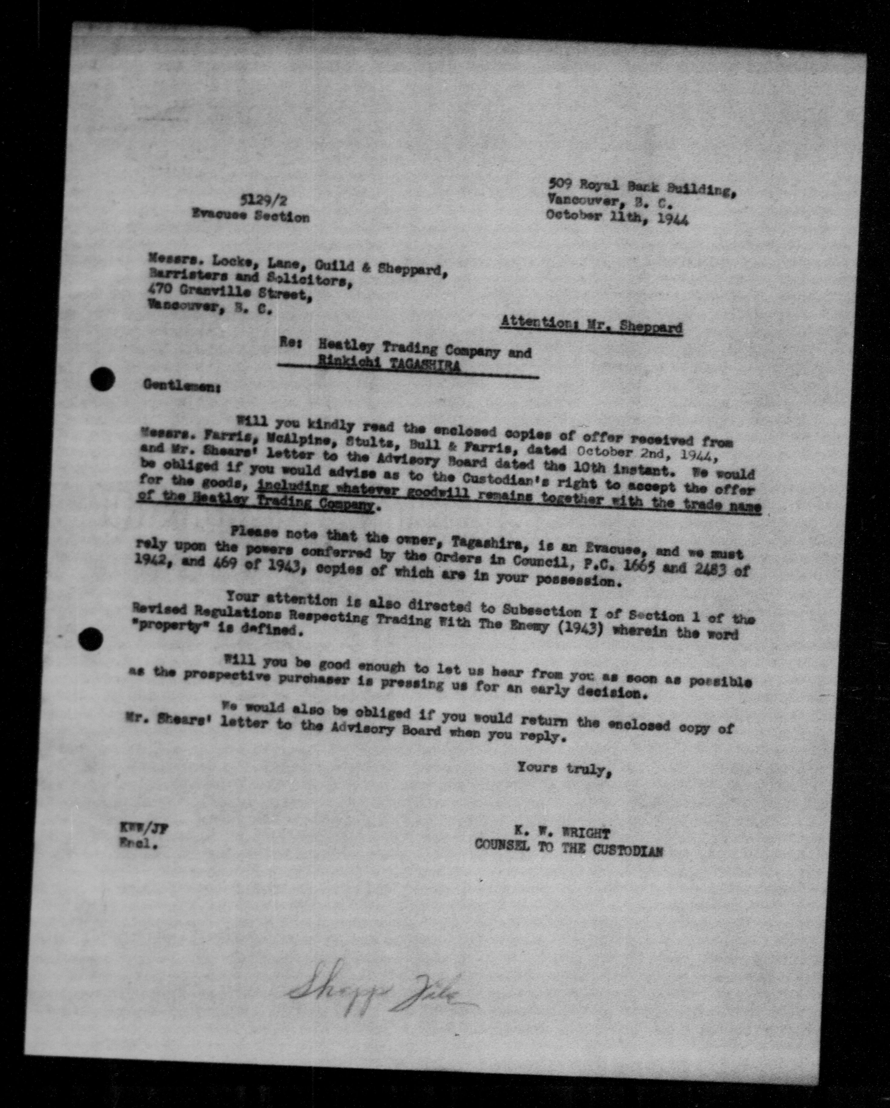 Office of the Custodian of Enemy Property, Administration of the Affairs of Persons of Japanese race - 9476