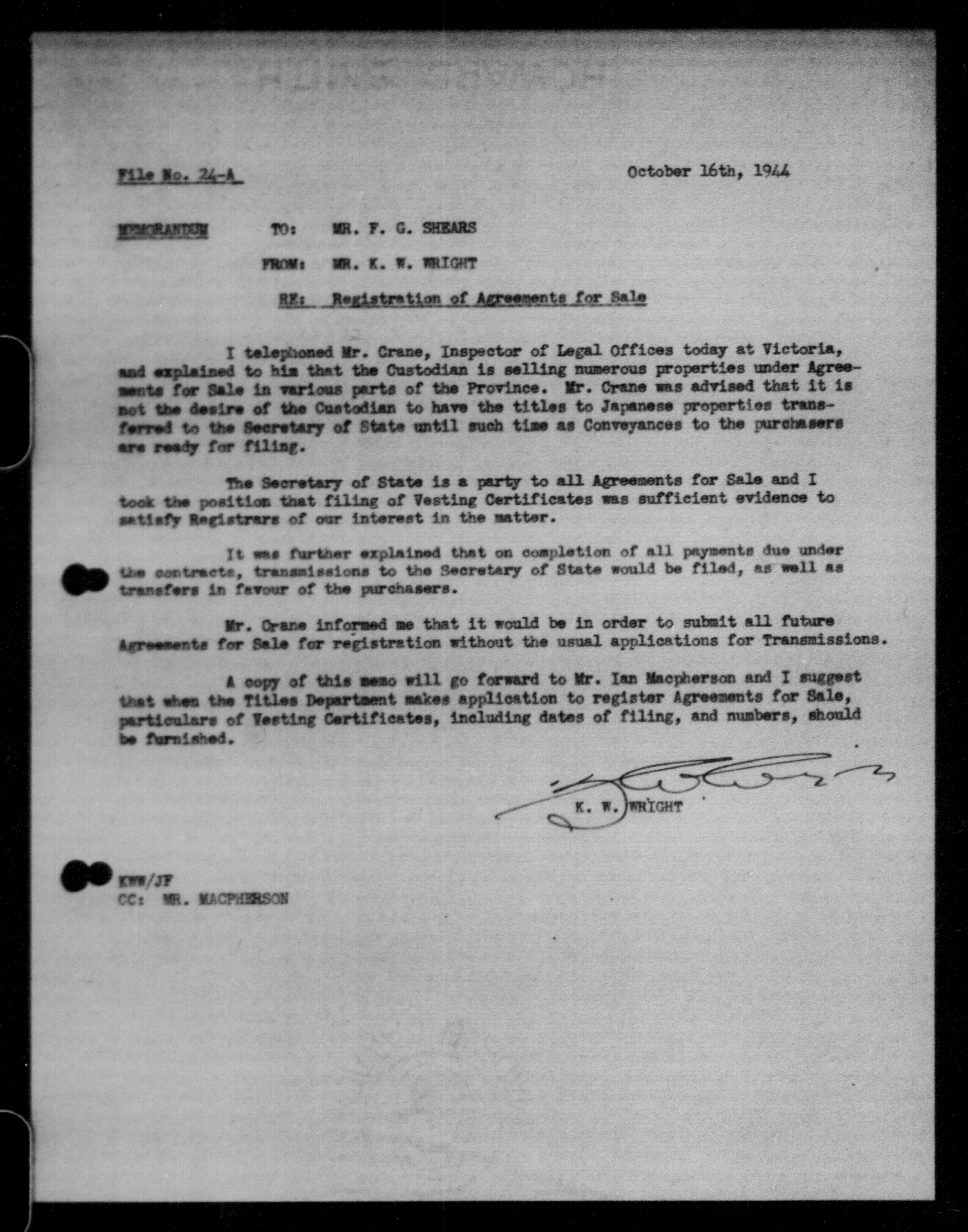 Office of the Custodian of Enemy Property, Administration of the Affairs of Persons of Japanese race - 9476