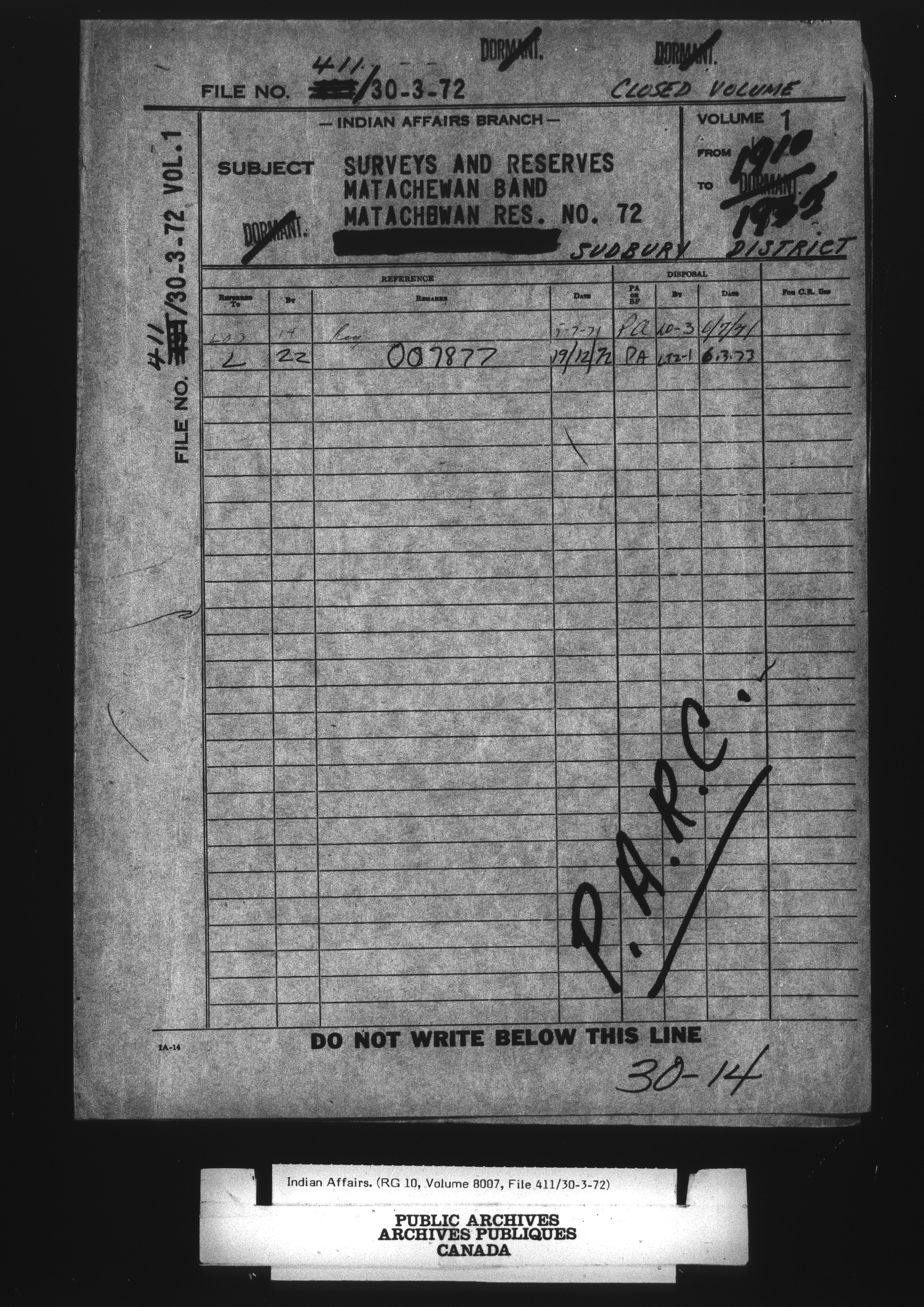 Department of Indian Affairs : Central Registry File