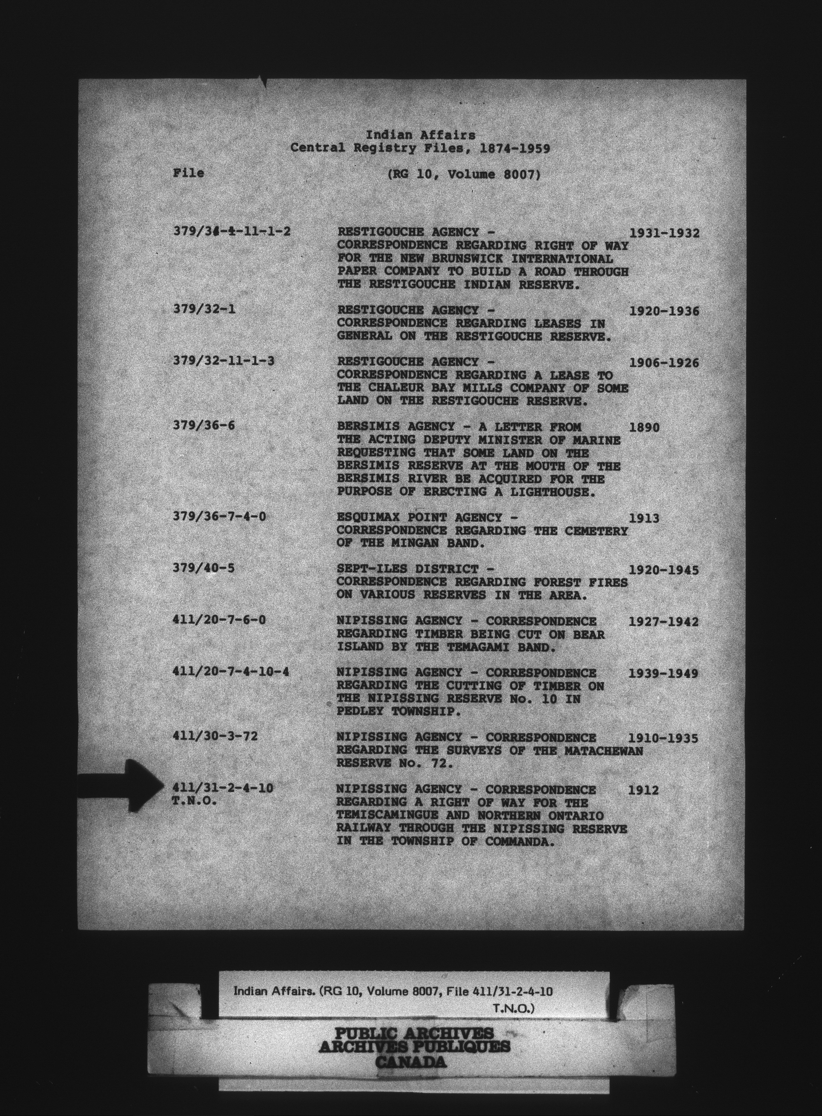 Department of Indian Affairs : Central Registry File