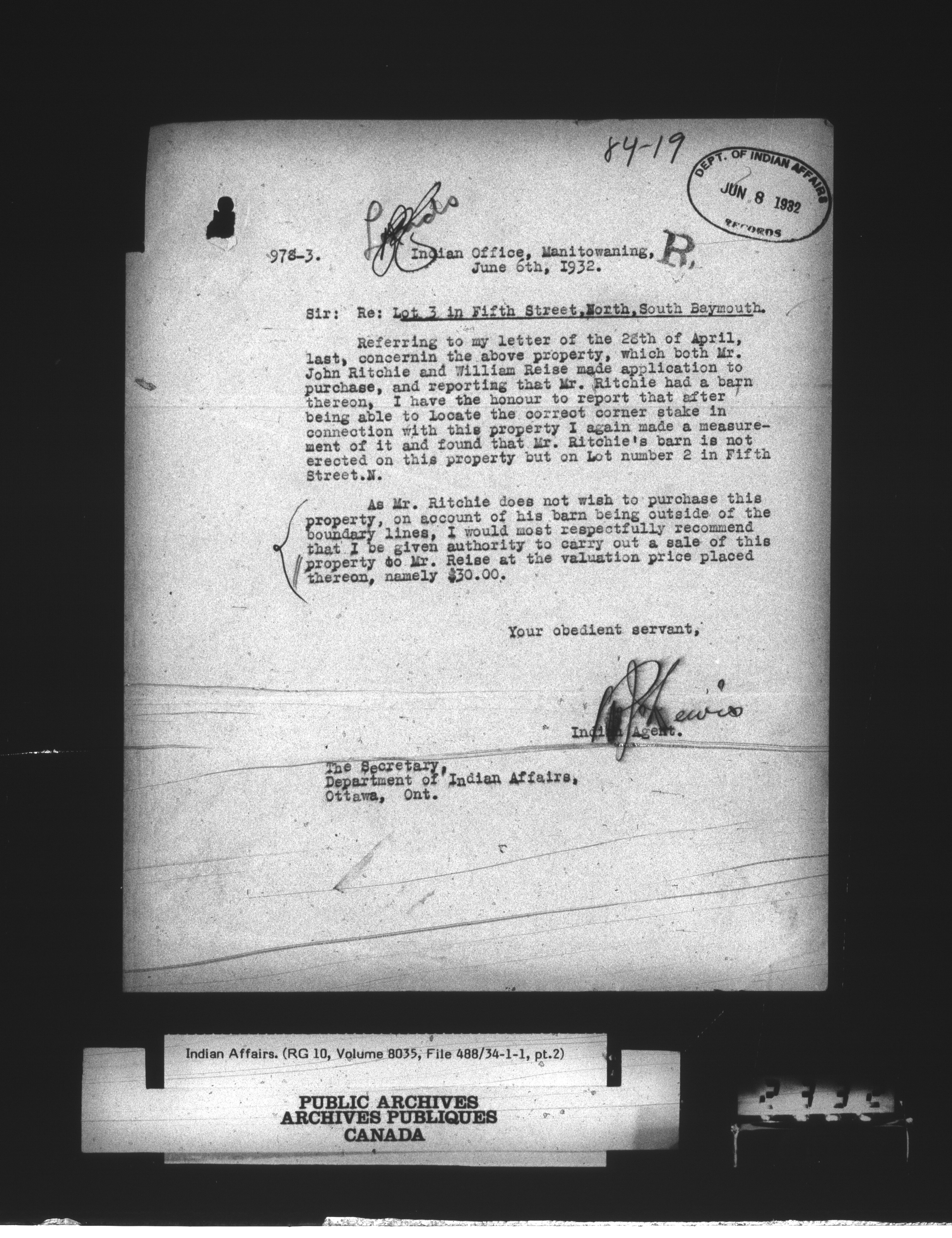 Department of Indian Affairs : Central Registry File - 9498