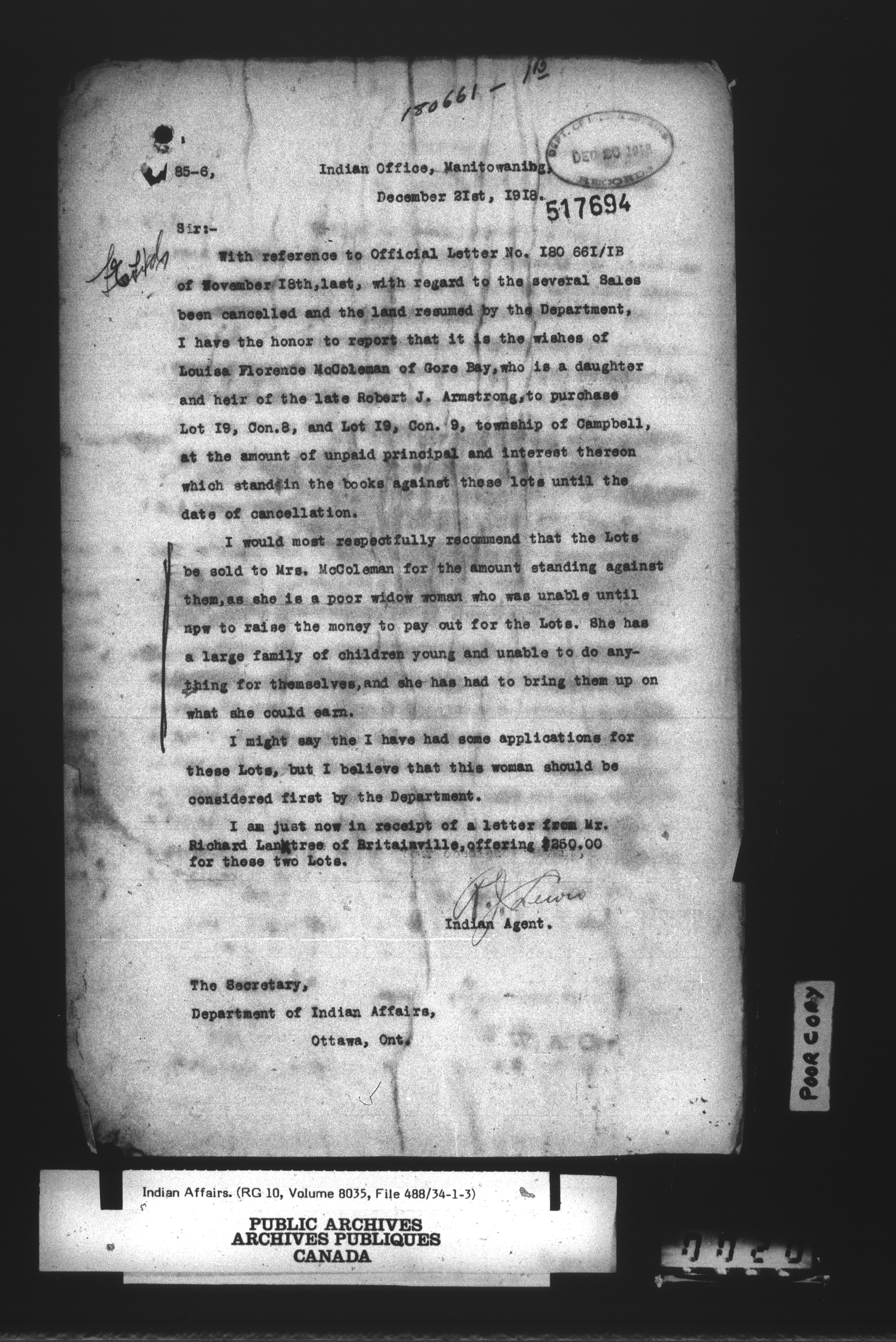 Indian and Inuit Affairs Program : Modified duplex numeric system : C-9499