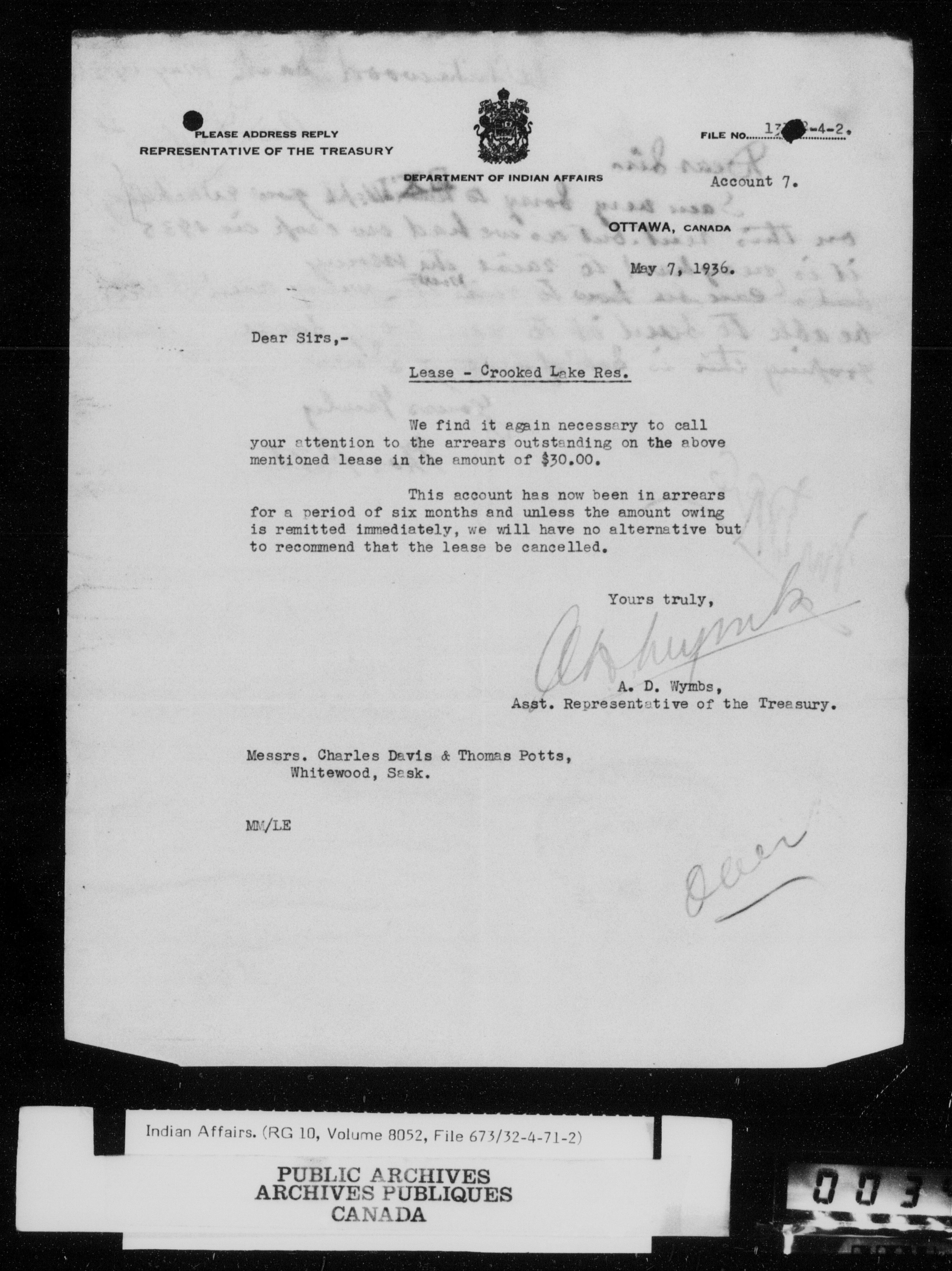 Department of Indian Affairs : Central Registry File - 9505