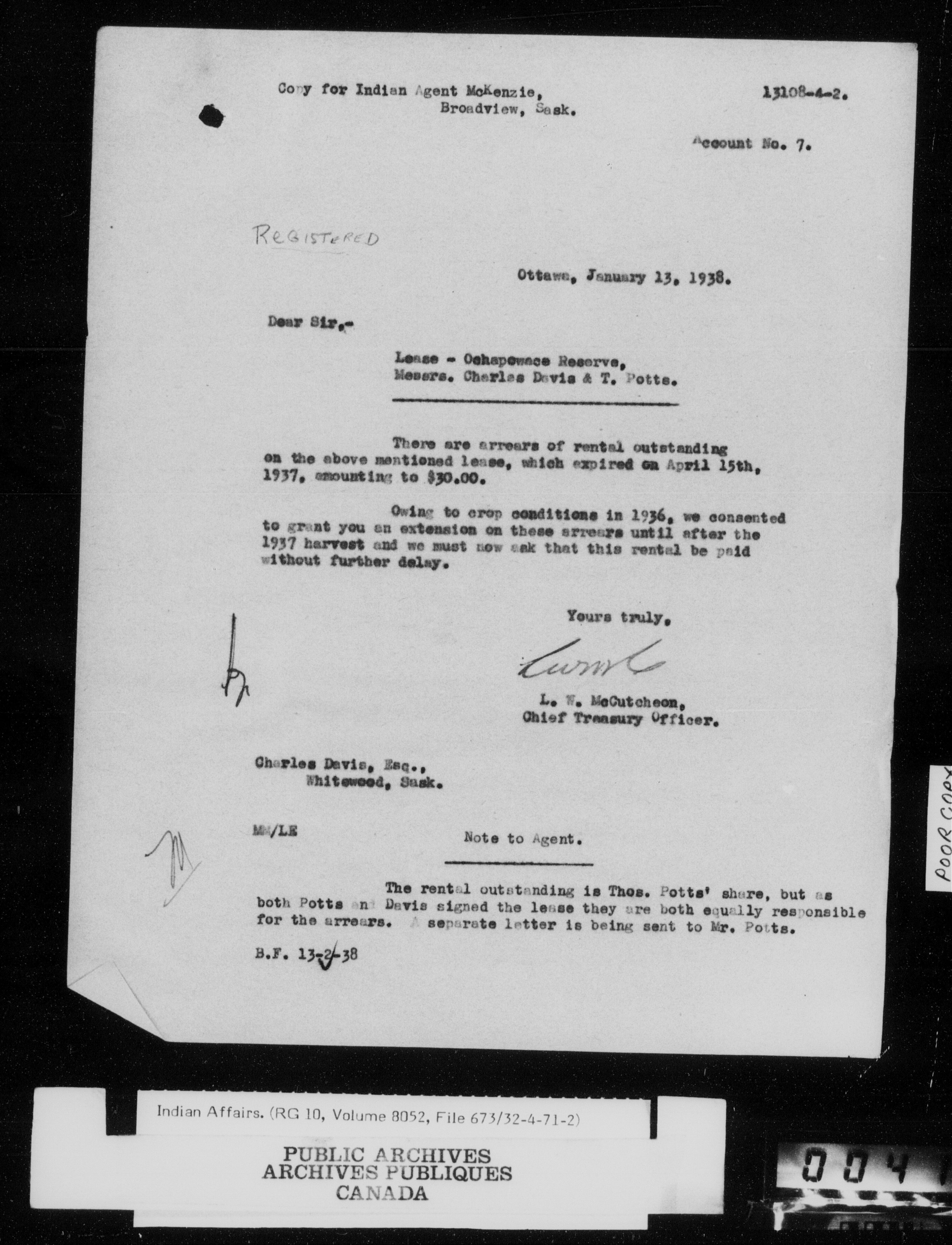 Department of Indian Affairs : Central Registry File - 9505