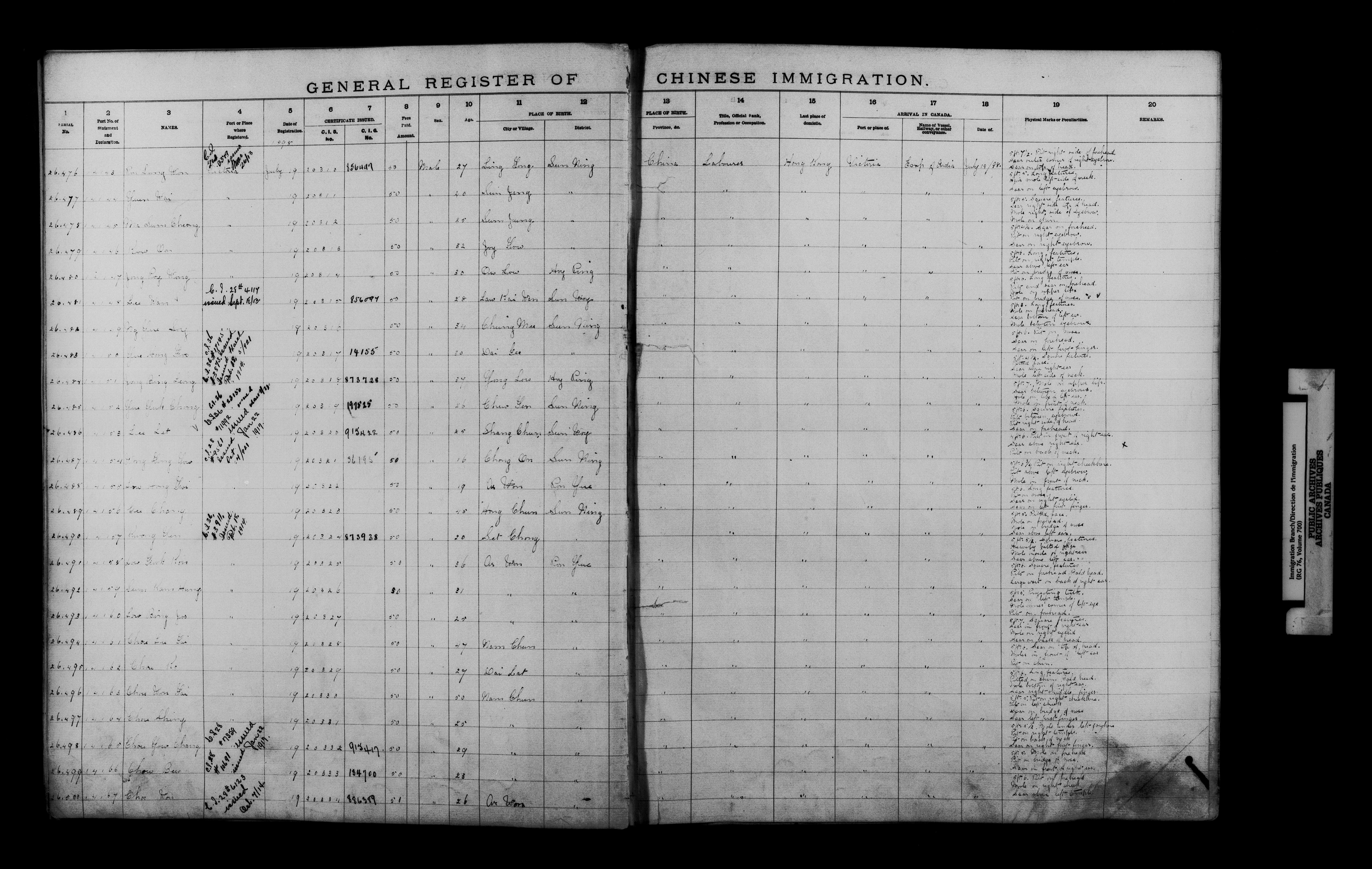 General registers of Chinese immigration, 1885-1903 - 9511
