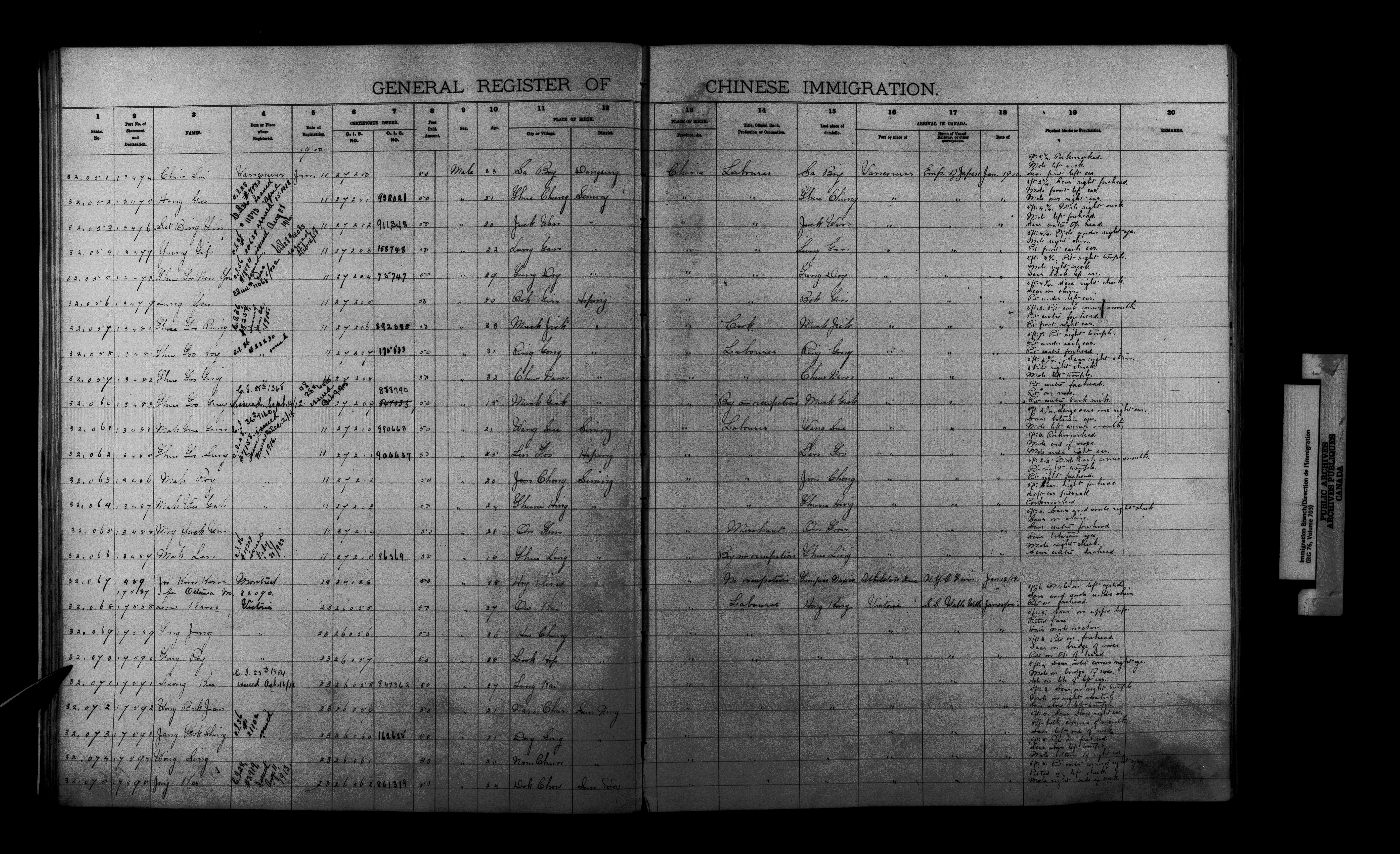 General registers of Chinese immigration : C-9513