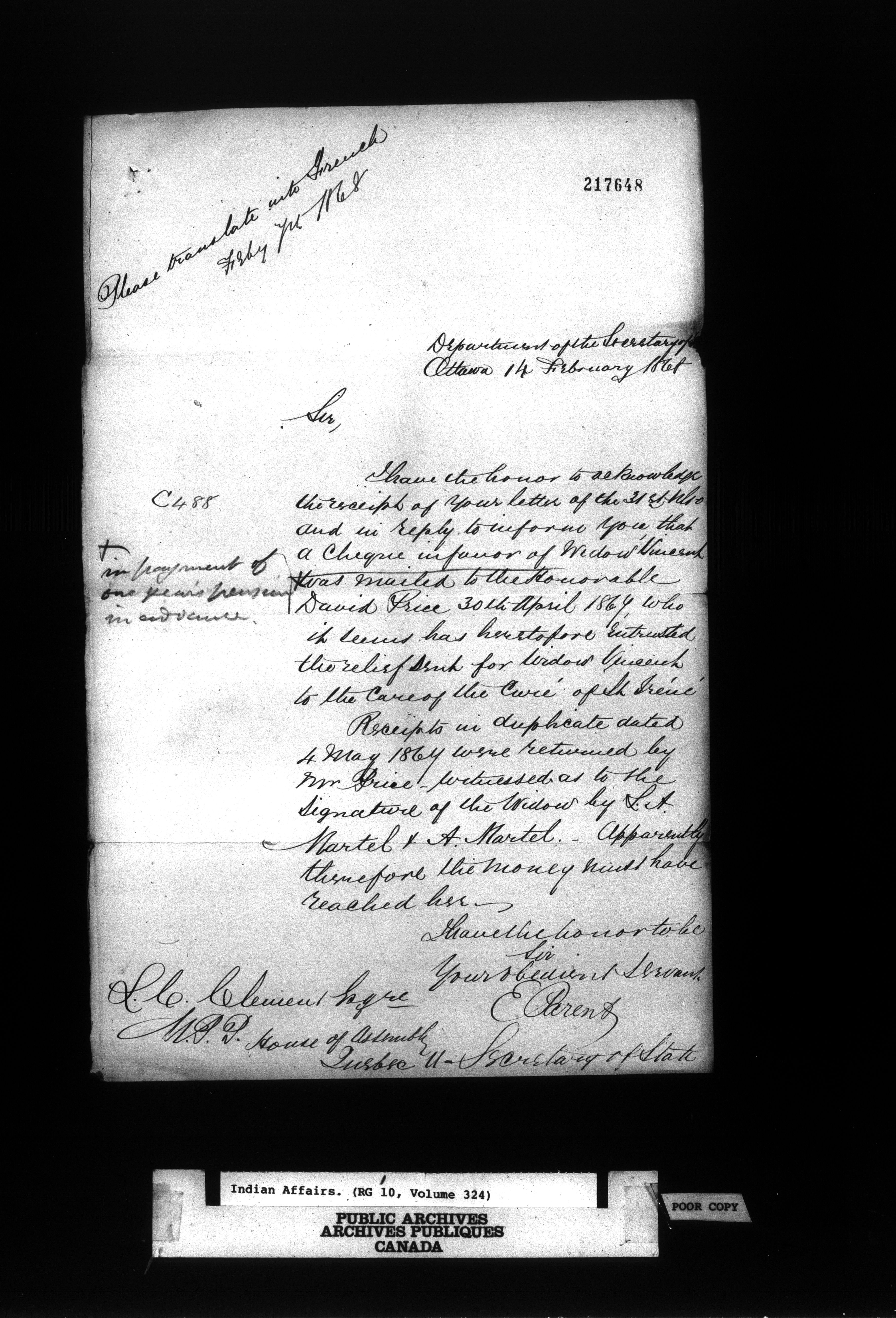 Office of the Deputy Superintendent General of Indian Affairs : Correspondence, 1862-1896 : C-9578